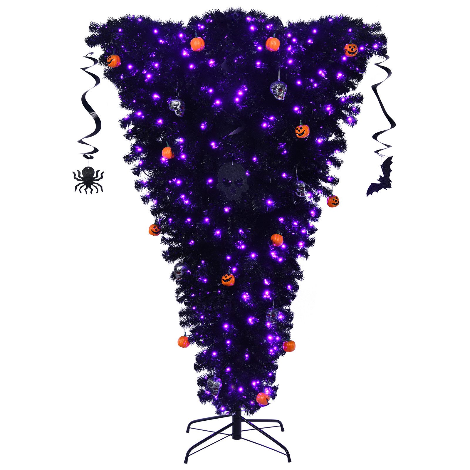 Dieser schwarze Baum steht auf dem Kopf und ist mit seinen lila Lichtern sehr dekorativ und gespenstisch. Durch die dichten PVC-Blätter, die hochwertigen LEDs, die klappbaren Zweige und den klappbaren Ständer ist er praktisch und sehr hübsch. Er kann zu allen möglichen Anlässen in Schulen, Büros oder im eigenen Zuhause verwendet werden.