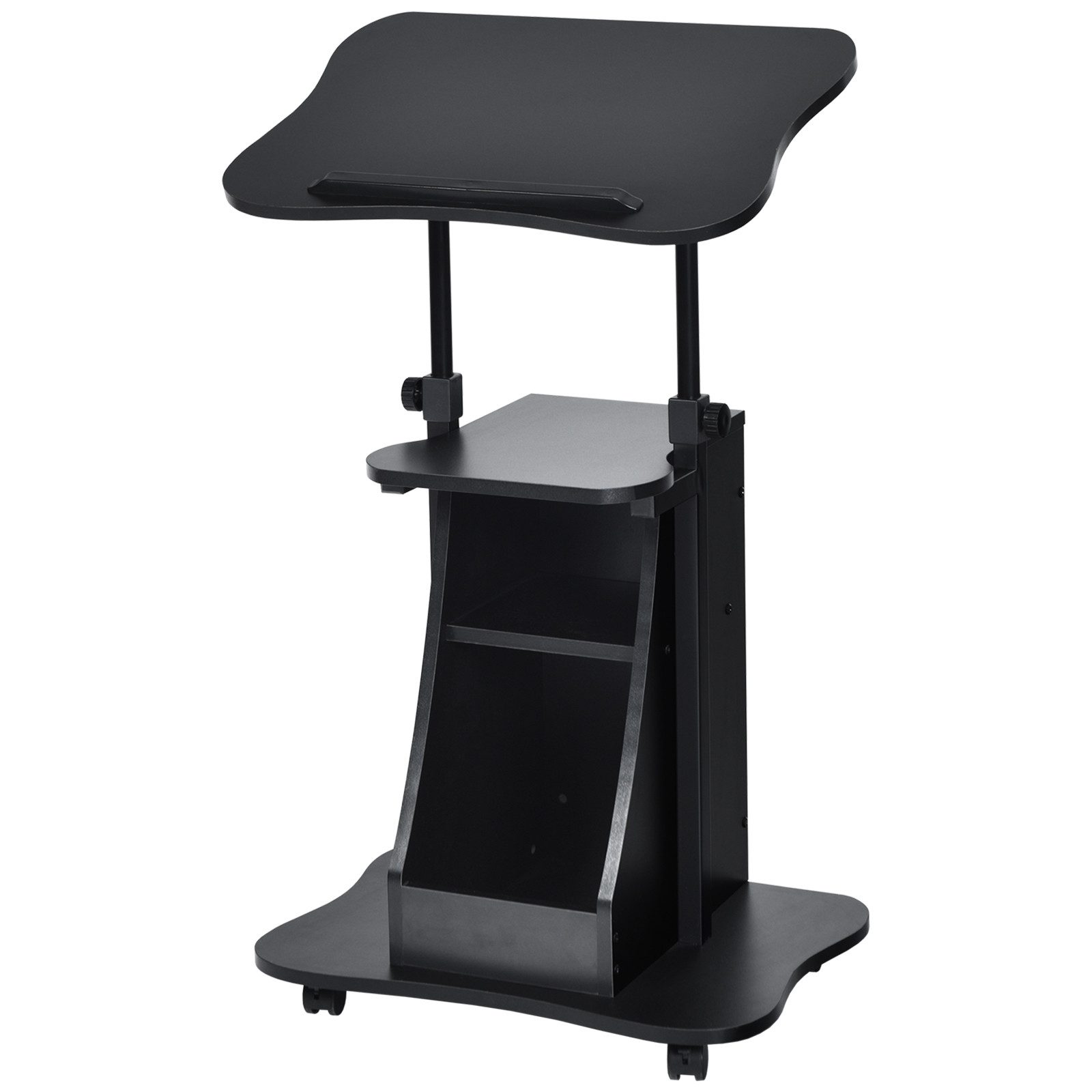 Unser Laptopwagen ist der ideale Helfer für Zuhause, Büro und Konferenzraum. Er besitzt eine höhenverstellbare Tischplatte, um so bequem zwischen Steh- und Sitzposition wechseln zu können, welche ebenfalls neigbar ist, für eine individuelle Verwendung. Die 2 offenen Fächer bieten Ihnen dabei reichlich Stauraum für verschiedenste Utensilien, wie Akten, Ordner und Unterlagen. Die 4 glatten Transporträder sorgen für praktische Mobilität und einfachen Transport.