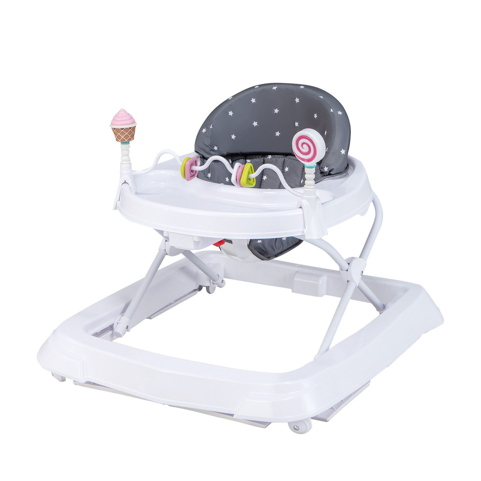 Das äußere Design dieser Lauflernhilfe ist süß und kindlich und fördert die Lernmotivation des Kindes. Ausgestattet mit Spielzeugen, die die Intelligenz und Mobilität des Kindes fördern, kann sie die Farbwahrnehmung und die praktischen Fähigkeiten von Kindern verbessern. Die Struktur des Gehwagens ist stabil und neigt nicht zum Umkippen, wodurch Kinder vor Stürzen geschützt und die Sicherheit des Babys gewährleistet wird. Und der Gehwagen lässt sich zusammenklappen, was kraft- und platzsparend ist. Noch wichtiger ist, dass der Lauflernwagen auf drei verschiedene Höhen eingestellt werden kann, um den Ansprüchen Ihres lieben Kleinen gerecht zu werden.