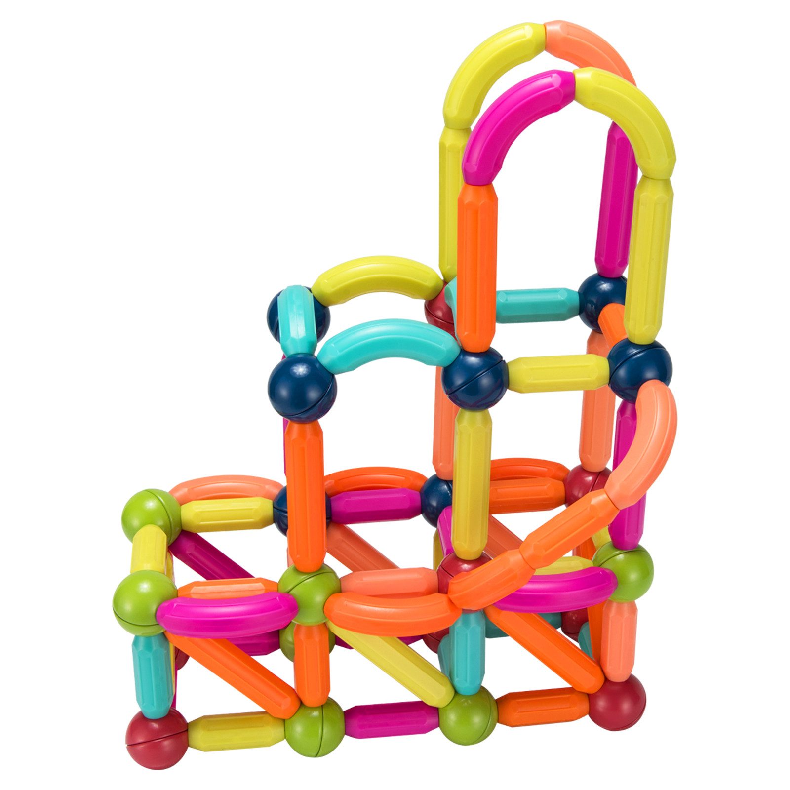 Es umfasst 18lange Stangen, 32 kurze Stangen, 16 geschwungene Stangen, 22 Bälle und 1 Aufbewahrungsbox. Sie können individuell zusammengebaut und bei Nichtgebrauch in der Box verstaut werden. Der Magnetismus sorgt für einfache Verbindungen. Zudem schützen die abgerundeten Ecken die Hände der Kinder. Das Set besteht aus ABS und ist langlebig, ungiftig und sehr sicher. Es eignet sich für Wohnzimmer, Spielzimmer, Kindergärten, etc. Außerdem regt es die kindliche Fantasie und das Vorstellungsvermögen an. Auch das logische Denken und die Wahrnehmung werden gefördert.