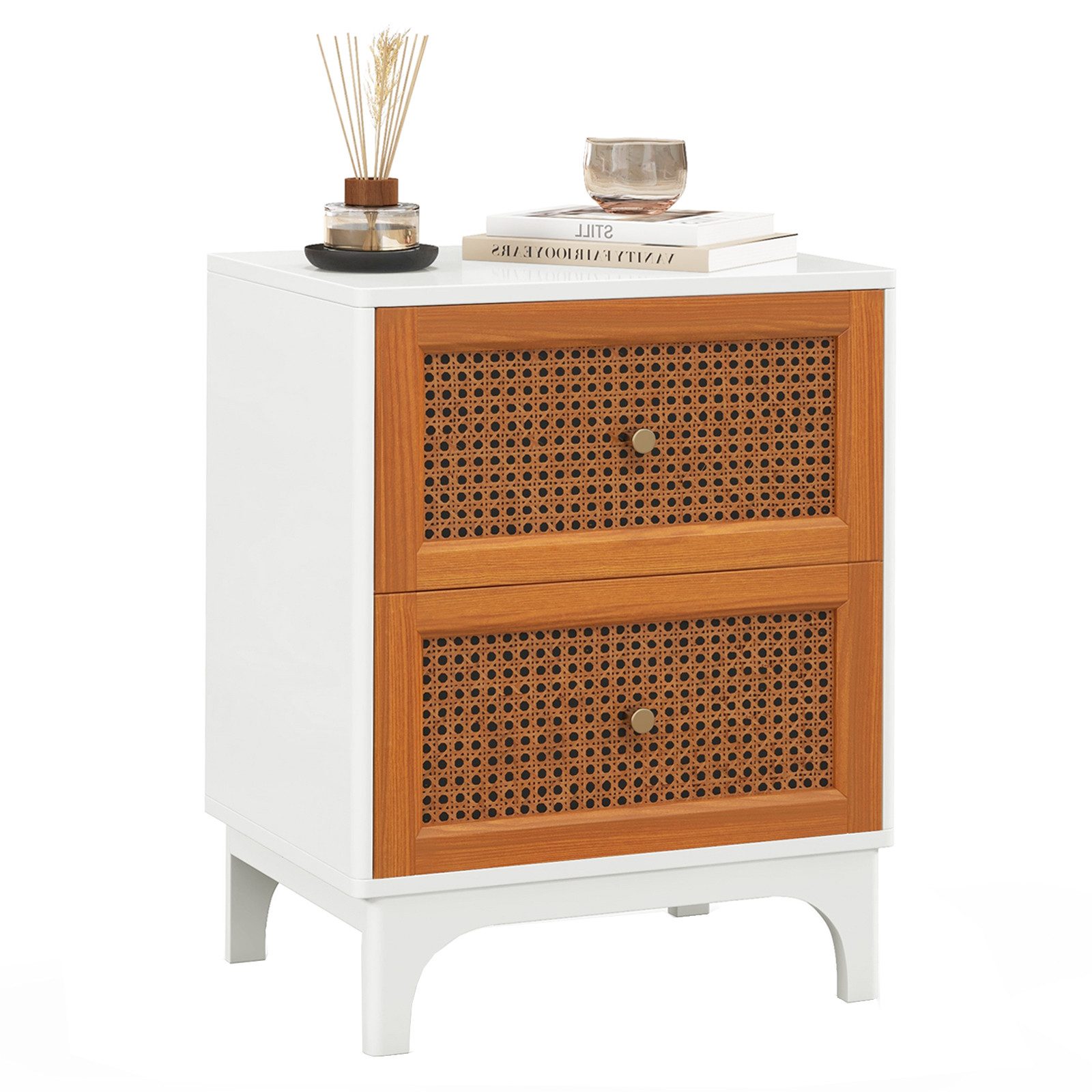 Verwandeln Sie Ihr Schlafzimmer mit diesem stilvollen Nachttisch in ein Boho-inspiriertes Paradies! Tauchen Sie ein in den Charme von handgeflochtenem Naturrattan an den Schubladenfronten, komplett mit auffälligen goldenen Griffen, die einen eleganten Touch verleihen. Mit 2 großzügigen Schubladen ist Schluss mit der Unordnung! Bewahren Sie Ihre geliebten Bücher, Elektronikgeräte und mehr problemlos auf. Dieser aus einer robusten Kombination aus MDF und Kiefernholz gefertigte Nachttisch ist auf Langlebigkeit ausgelegt und gewährleistet eine lange Haltbarkeit. Aber warten Sie, es gibt noch mehr! Dieses vielseitige Stück geht über das Schlafzimmer hinaus – nutzen Sie es als stilvollen Beistelltisch oder als perfekte Aufbewahrungslösung in Ihrem Wohnzimmer oder Flur. Verpassen Sie nicht die Aufwertung Ihrer Inneneinrichtung! Genießen Sie den Boho-Stil und holen Sie sich noch heute Ihren Traumnachttisch!