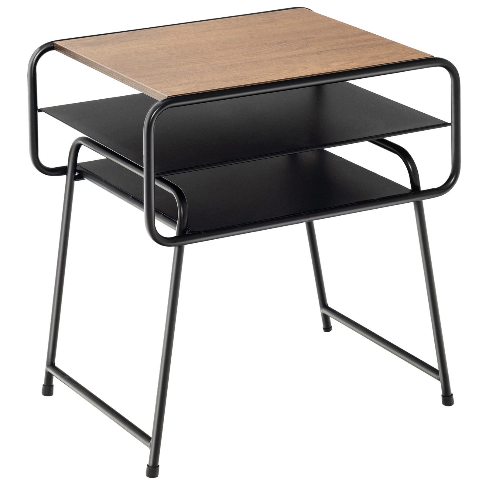 Suchen Sie einen schmalen Tisch, der neben dem Sofa Platz findet? Dieser Beistelltisch ist eine gute Wahl für Sie! Er kann nicht nur ein Beistelltisch neben Bett oder Stuhl sein, sondern auch ein 3-stufiges Ablageregal für überall. Er hat eine breite Tischplatte und 2 offene Regale, Sie können wählen, ob Sie Ihre Sammlung ausstellen oder die Bücher oder Zeitschriften im Regal aufbewahren möchten. Hochwertiges MDF erhöht die Robustheit der Tischplatte und der hochbelastbare Eisenrahmen bietet eine große Tragfähigkeit von bis zu 40 kg. Geeignet für Wohnzimmer, Schlafzimmer oder jeden kleinen Raum! Dieser Beistelltisch kann Ihrem Zimmer ein modernes und charmantes Gefühl verleihen.