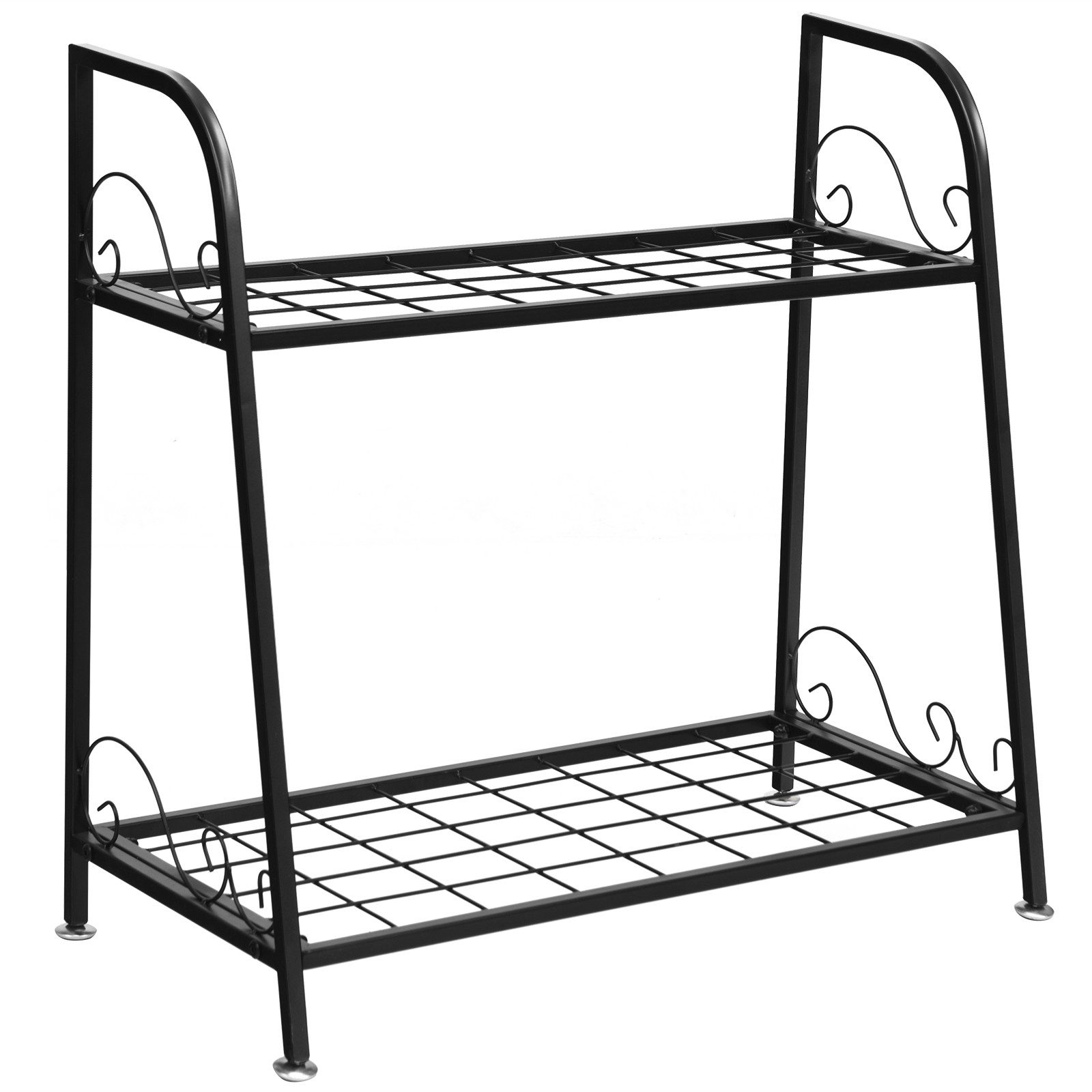 Dieser 2-stufige Metallständer ist sehr praktisch. Er besteht aus hochwertigem Eisen mit einer rostbeständigen Pulverbeschichtung, wodurch er robust und langlebig ist. Die verstellbaren Füße sorgen für Stabilität und schützen den Boden vor Kratzern. Durch die zwei Ebenen wird Ihnen zudem viel Platz für verschiedenste Toppflanzen, Bücher, Dekoration, Schuhe, etc. geboten. Durch das schlichte und elegante Design passt er zu allen möglichen Einrichtungen und eignet sich für Wohnzimmer, Balkone, Gärten, etc.