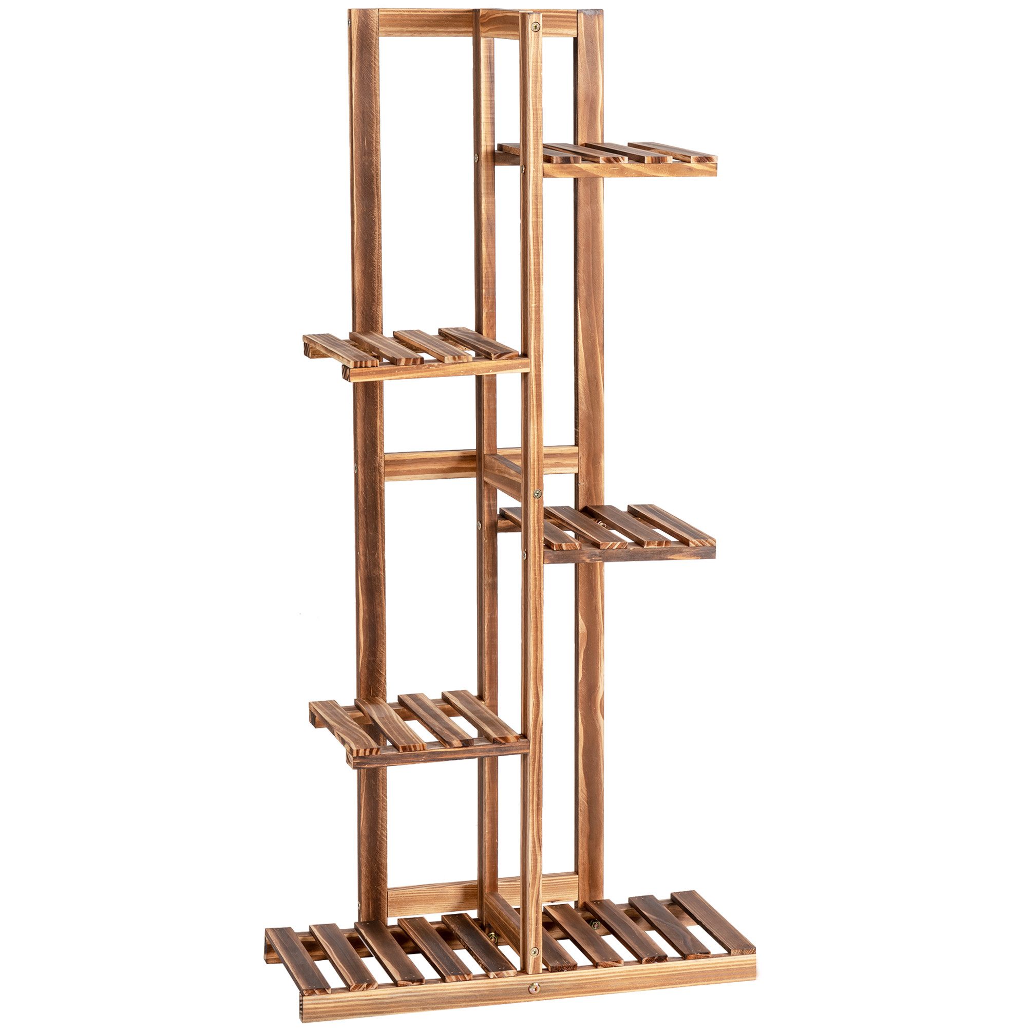 Das Kiefernholz wurde bei hoher Temperatur karbonisiert, wodurch es robust und formstabil ist. Auf den 5 Ebenen ist Platz für verschiedenste Arten von Pflanzen. Zudem sorgt der Kippschutz für einen stabilen Stand. Durch das offene Design bekommen alle Pflanzen genügend Sonnenlicht. Dieses Regal ist eine dekorative Ergänzung für Ihr Zuhause, beispielsweise das Wohnzimmer oder den Balkon. Zögern Sie nicht länger und schlagen Sie zu!