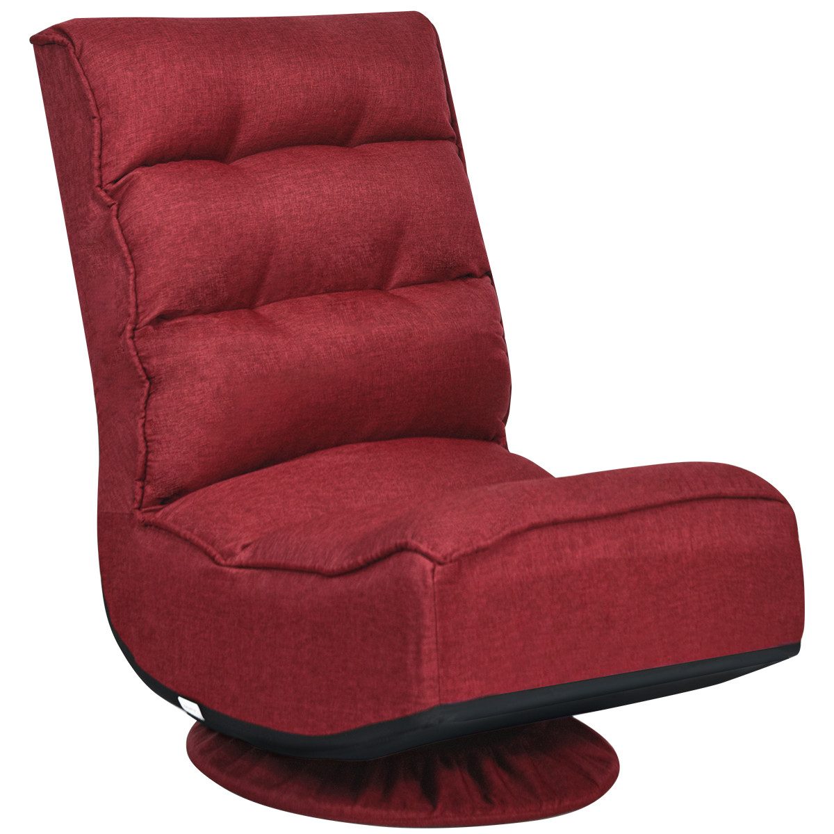 Sitzen Sie bequem auf unserem verstellbaren Bodenstuhl. Dieser Drehstuhl ist dicht gepolstert und fühlt sich weich an. Der hochwertige Stoffbezug ist atmungsaktiv, reißfest und langlebig. Im Vergleich zu anderen gewöhnlichen Bodenstühlen verfügt unser Modell über ein 360-Grad-Drehdesign, das viel Spaß macht. Die Rückenlehne ist in 5 Winkeln verstellbar und macht es Ihnen möglich, die bequemste Sitzposition zu finden. Außerdem ist dieser Drehstuhl mit einer abnehmbaren Bodenabdeckung ausgestattet, um diesen vor Kratzern zu schützen. Bei Verschmutzung lässt er sich zur Reinigung leicht abnehmen. Die Rückenlehne ist zur einfachen Aufbewahrung klappbar. Mit seinem schlichten und modernen Aussehen passt er perfekt zu jedem Wohnstil.