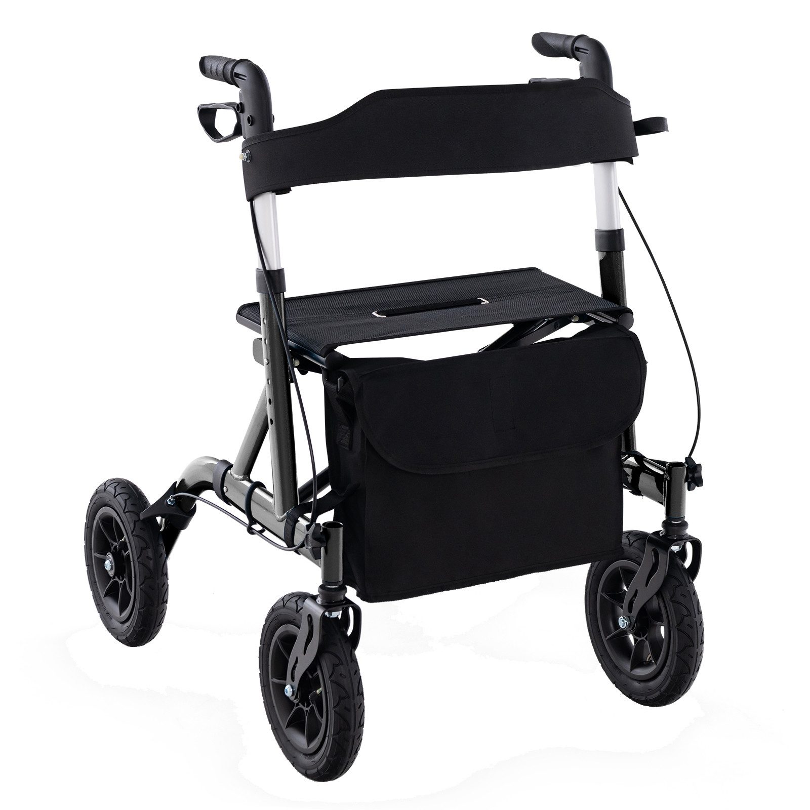 Erleben Sie ultimativen Komfort mit unserem innovativen umwandelbaren Gehhilfe. Ausgestattet mit geländegängigen pneumatischen Rädern bietet unser Rollator eine hohe Stoßdämpfung, Rutschfestigkeit und geringe Geräuschentwicklung für eine reibungslose Bewegung auf verschiedenen Oberflächen. Praktischerweise kann dieser Rollator mühelos zwischen Gehhilfe und Stuhl wechseln, sodass Benutzer sich hinsetzen und ausruhen können, wann immer sie möchten. Der gepolsterte Sitz, die stützende Rückenlehne und die bequemen Handläufe machen ihn außerdem ideal für ältere Benutzer wie Senioren oder Reha-Patienten. Dank seiner praktischen Faltstruktur lässt sich dieser Rollator leicht verstauen und transportieren.