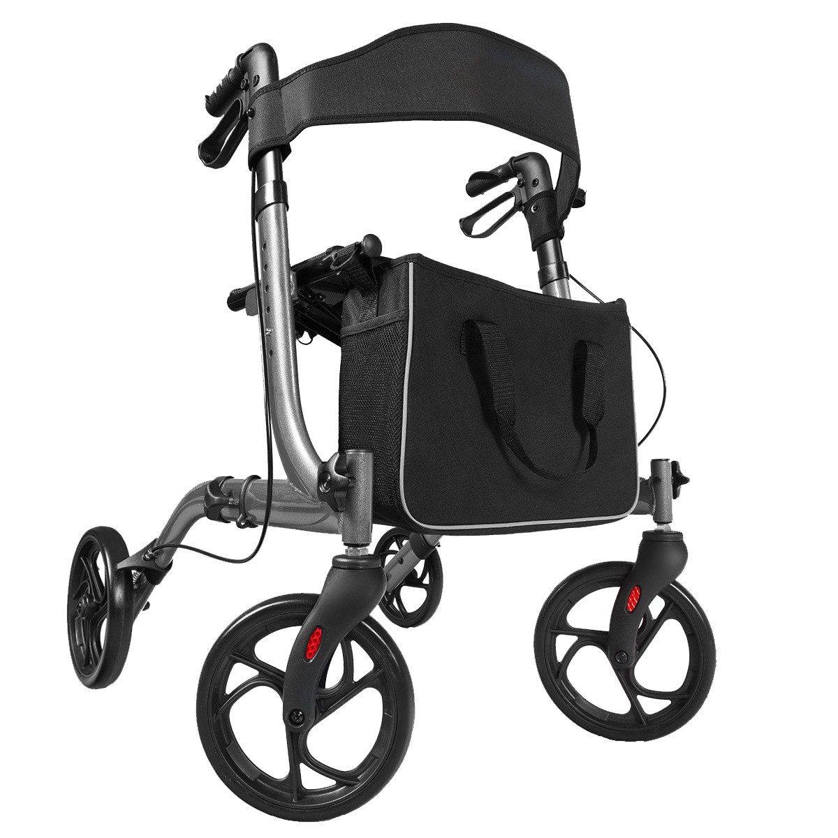 Unser zusammenklappbarer Rollator kombiniert optimal die Mobilität und Portabilität, die man bei einer Gehhilfe benötigt. Die breitere Rückenlehne und der atmungsaktive Sitz bieten Ihnen außerdem eine gute Stütze. Sie können den Rollator problemlos mit einer Hand zu einer kompakten Размер zusammenfalten, um Platz zu sparen. Die ergonomischen Anti-Rutsch Griffe lassen sich auf 6 verschiedene Höhen einstellen, damit Sie die für sich angenehmste Stellung auswählen können. Dank der Pedale als Ankipphilfe und dem doppelten Bremssystem gewährleistet Ihnen der Rollator eine hohe Sicherheit und Stabilität. Darüber hinaus verfügt er über einen abnehmbaren Aufbewahrungsbeutel sowie eine Halterung für Ihren Regenschirm, womit Sie alle Ihre täglich benötigten Artikel komfortabel mit sich tragen können.