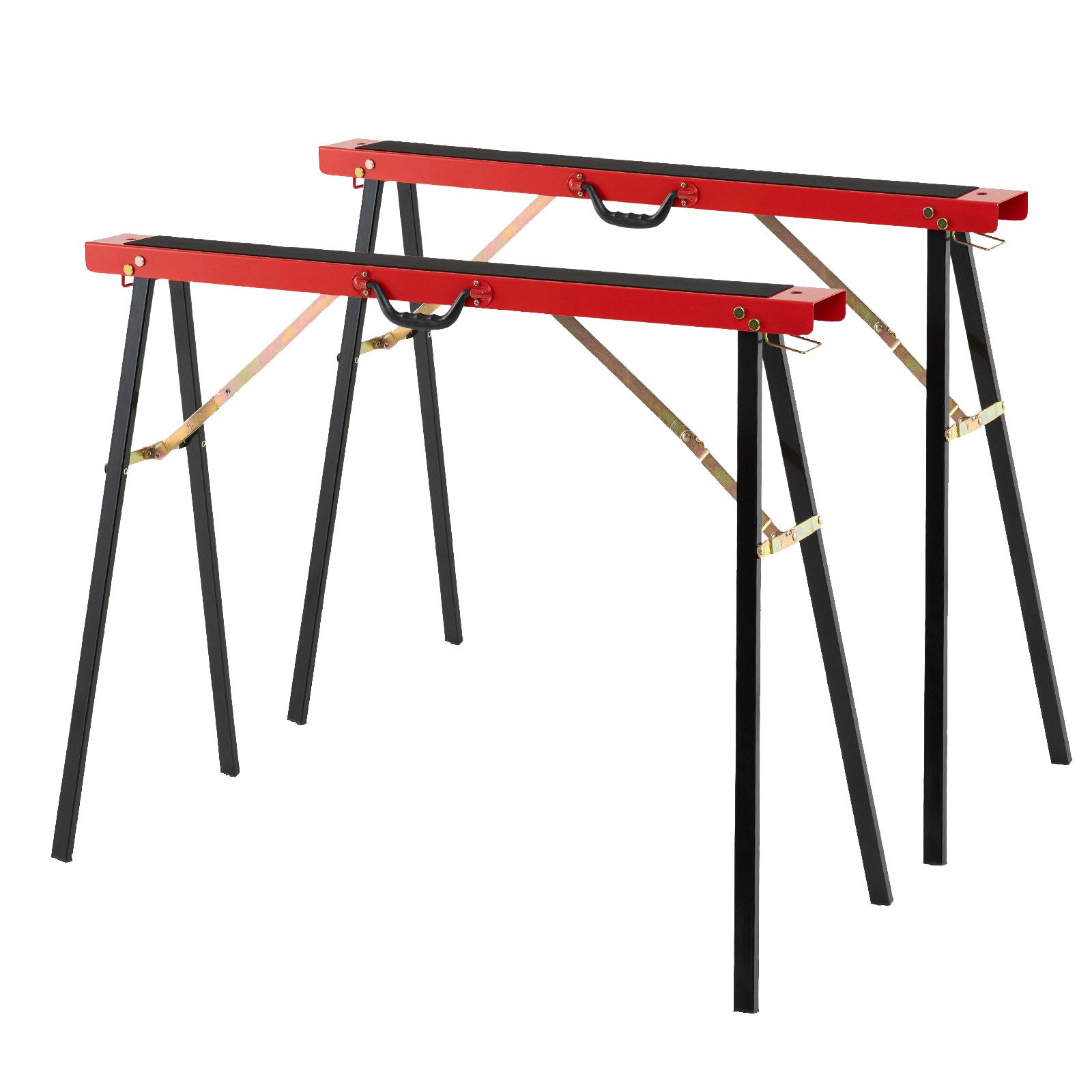 Erleben Sie ultimativen Komfort mit diesem 2er-Pack tragbare Sägeböcke. Gefertigt aus robustem galvanisiertem Metall bieten die 2 Sägeböcke mit dreieckiger Struktur zusammen eine Tragkraft von bis zu 375 kg und somit starken Halt für schwere Arbeiten. Jeder Sägebock verfügt über eine rutschfeste Arbeitsfläche, die Materialien sicher und kratzfrei hält. Zudem ermöglichen die vorgebohrten Löcher die sichere Befestigung der Werkstücke mithilfe von Schrauben. Die kompakte Faltgröße und das geringe Gewicht machen sie mühelos zu lagern und zu transportieren. Da keine Montage erforderlich ist, sind diese Sägeböcke mit ihren hochwertigen Details sofort bereit, jede Aufgabe zu bewältigen.