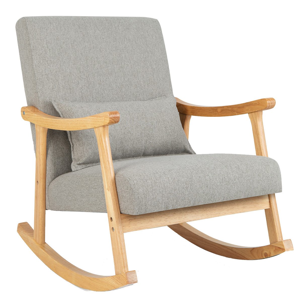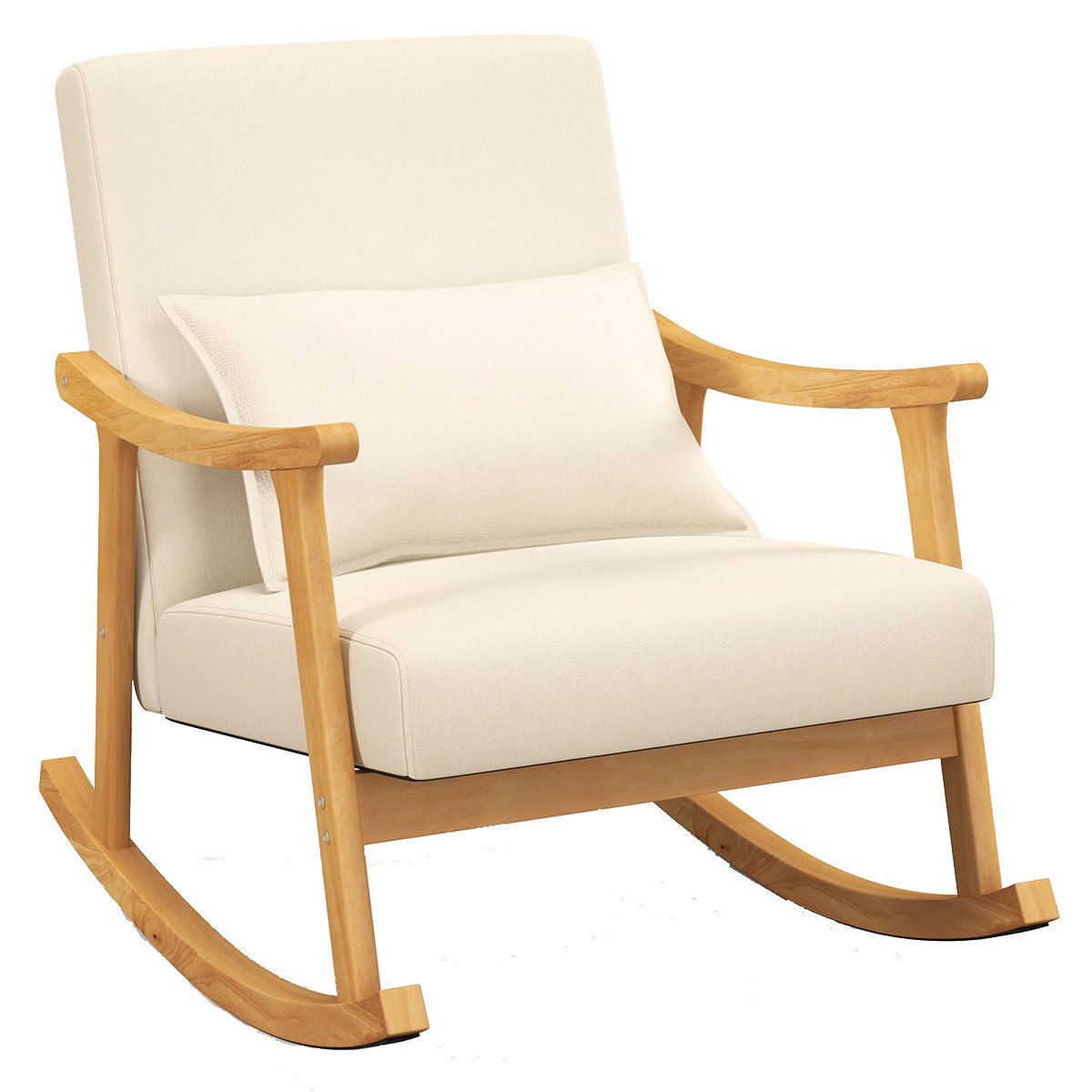 Mit geneigter Rückenlehne und glatten Armlehnen passt sich dieser Schaukelstuhl den natürlichen Körperkurven an und bietet komfortable Unterstützung. Sie können sich anlehnen, um vor- und zurückzuschwingen und so Druck auf Ihren Rücken und Ihre Gelenke zu verringern. Zudem ermöglicht der Naturgummi-Holzrahmen herausragende Stärke und hohe Stabilität, wobei er bis zu 150 kg tragen kann, sodass er Sie jahrelang begleiten wird.