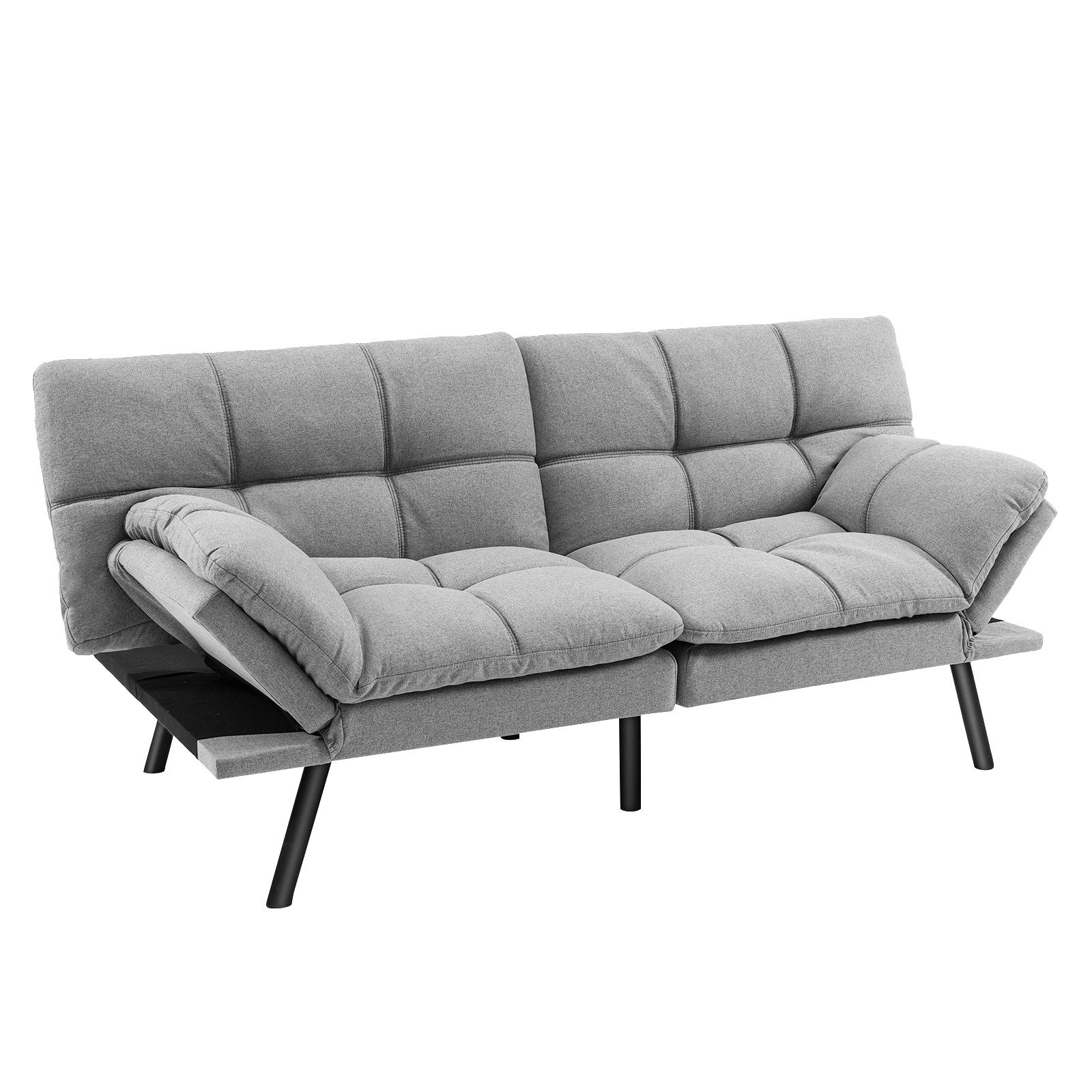 Dieses Futon-Schlafsofa verfügt über eine dreifach verstellbare Rückenlehne und vierfach verstellbare Armlehnen, mit denen Sie das Sofa in die gewünschte Position bringen können. Sie können es als Bodensofa, Lounge oder Bett verwenden. Der Sofabezug besteht aus hautfreundlichem und atmungsaktivem Polyester-Leinenimitat. Und der Memory-Schaum und die hochwertigen Serpentinenfedern sorgen dafür, dass Sie beim Sitzen vollkommen entspannen können. An der Unterseite des Schlafsofas befindet sich eine Reißverschlusstasche. Hier finden Sie die Beine und die benötigte Hardware. Mit der ausführlichen Bedienungsanleitung können Sie dieses Futonsofa schnell zusammenbauen.