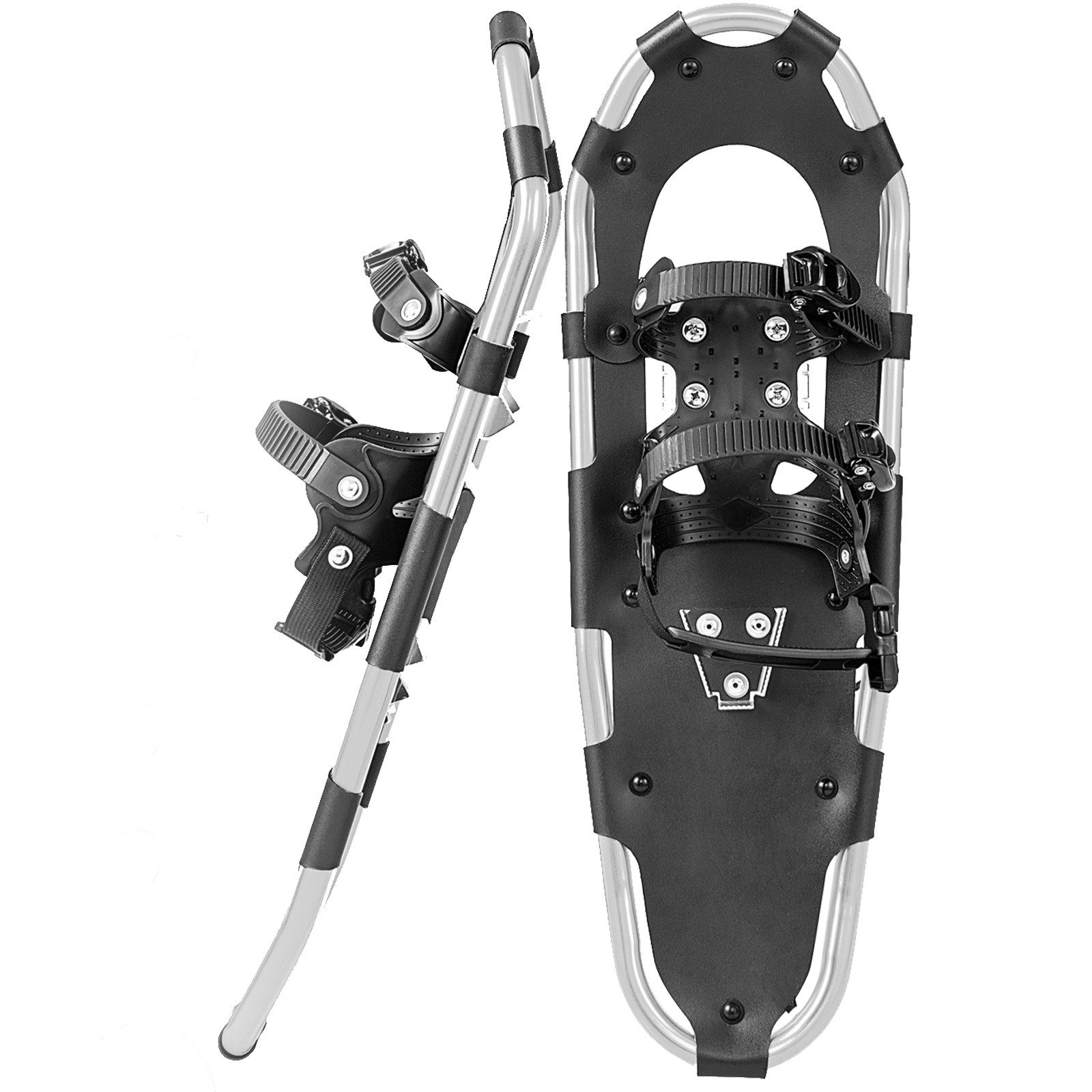 Dieses Gelände-Schneeschuhset enthält Schneeschuhe, Skistöcke, Schlammkörbe, Schneekörbe, einen Aufbewahrungsclip und eine Tragetasche. Jeder Schneeschuh besteht aus einer leichten Aluminiumlegierung und kältebeständigem PE-Material und ist langlebig für den Langzeiteinsatz bei niedrigen Temperaturen. Ausgestattet mit einer großen Oberfläche und starken Steigeisen erleichtern Ihnen die Schneeschuhe das Gehen und Klettern auf ebenen, vereisten und harten Oberflächen. Die verstellbare Ratschenbindung und der Fersenriemen halten Ihre Füße für mehr Sicherheit an Ort und Stelle. Die Skistöcke verfügen über eine stufenlos verstellbare Длина und eine äußerst verschleißfeste Wolframspitze. Die Tragetasche besteht aus wasserdichtem Oxford-Gewebe und lässt sich mit Tragegriff oder Schultergurt leicht transportieren.
