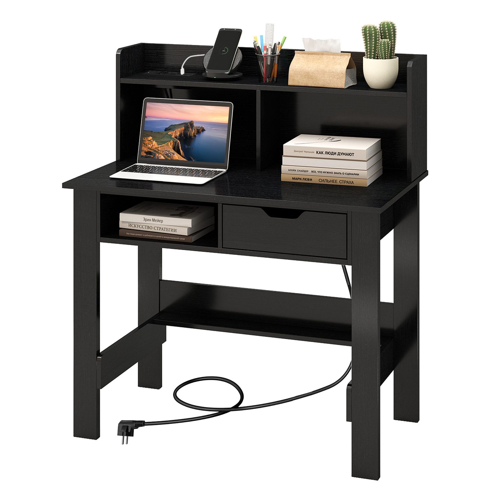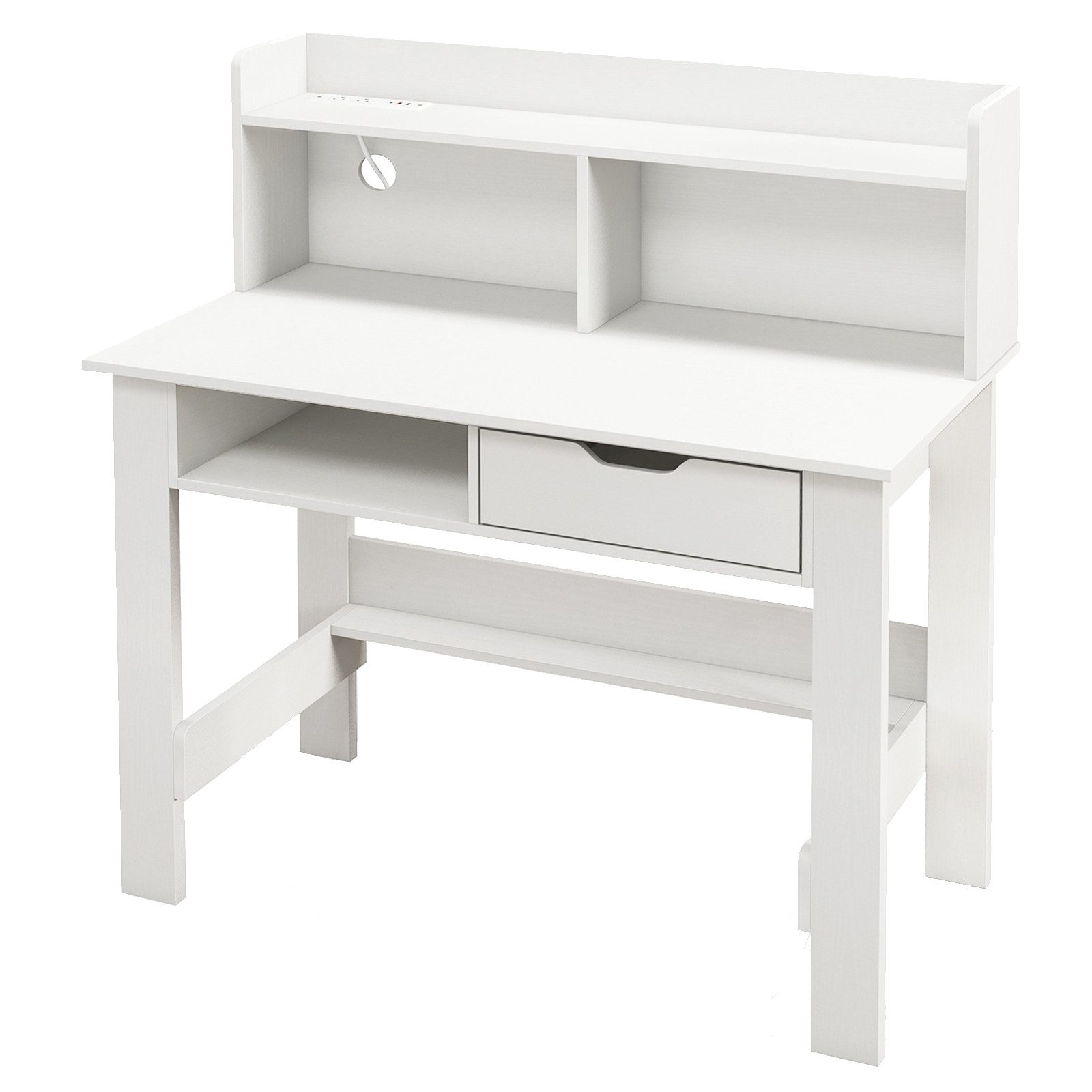 Verwandeln Sie Ihren Arbeitsplatz mit unserem Computertisch, der auf Ihre Studien- und Arbeitsbedürfnisse abgestimmt ist. Die integrierte Ladestation und das Kabelmanagement-Loch sind elegant in den Tisch eingebettet und bieten einfachen Zugang zu Strom für verschiedene elektronische Geräte. Die breite Tischplatte und das offene Regal vergrößern den Klassifizierungs- und Ausstellungsbereich für Gegenstände. Mit einem offenen Fach und einer Schublade bietet dieser Schreibtisch ausreichend Stauraum, um Ihren Arbeitsplatz ordentlich und organisiert zu halten.