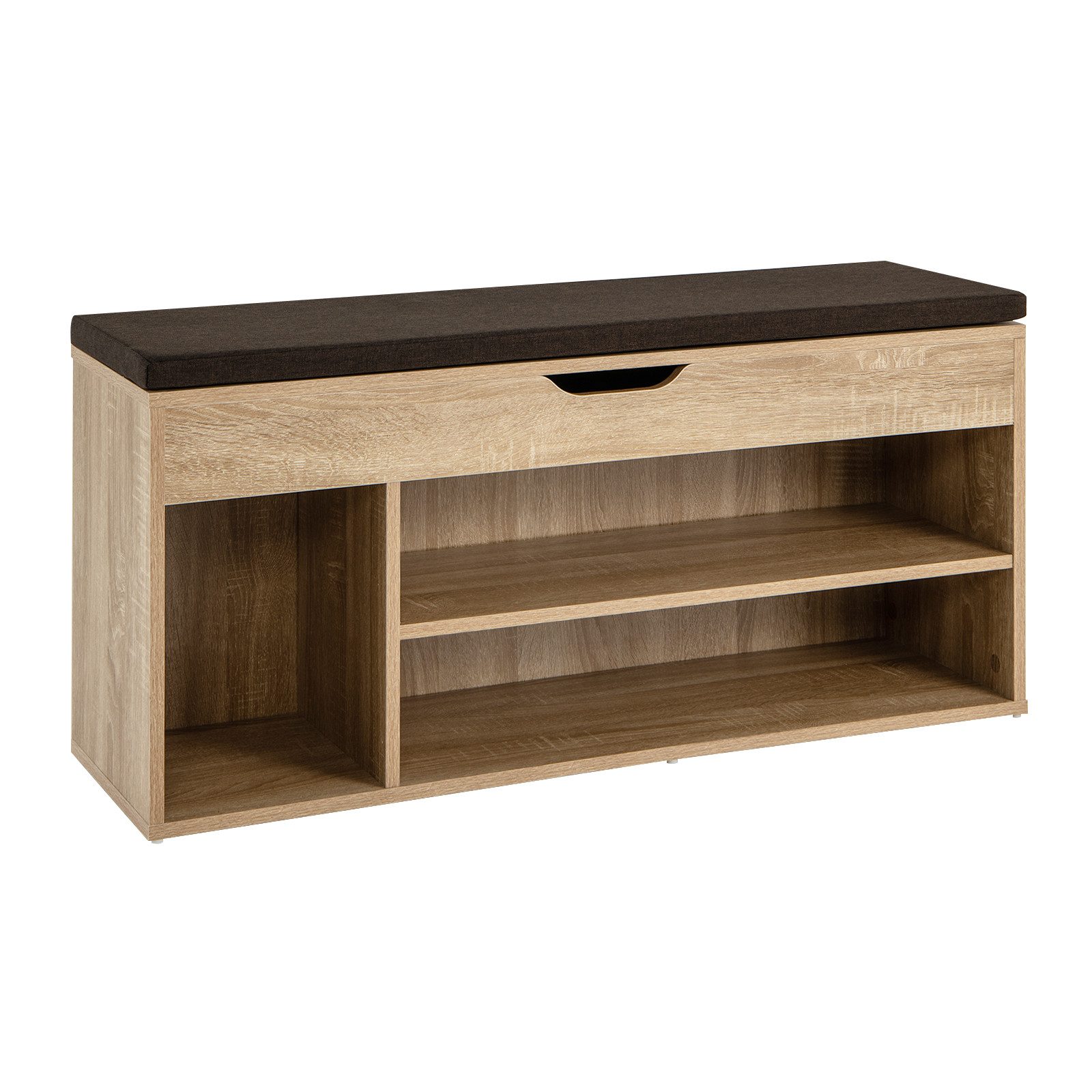 Der Schuhschrank mit Sitzbank macht optisch einen wertigen Eindruck, die abnehmbare Sitzauflage ist bequem.