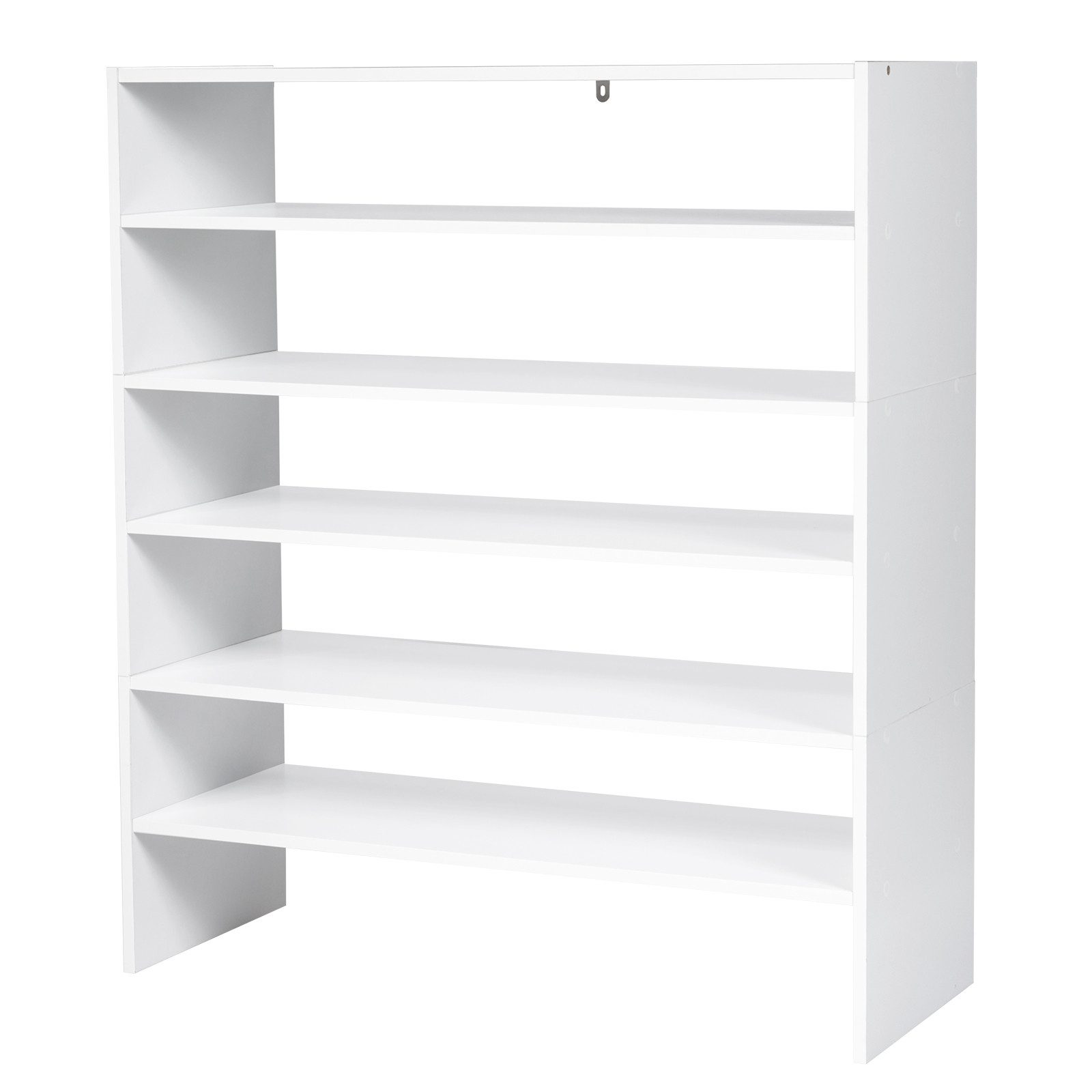 Suchen Sie ein platzsparendes Schuhregal zur Aufbewahrung Ihrer verschiedenen Schuhe? Dieses 3-teilige Schuhregal mit 2 Ebenen ist die perfekte Lösung, um Ihre Schuhe ordentlich und aufgeräumt zu halten. Umweltfreundliches Holz und robuste Struktur sorgen für jahrelangen sorgenfreien Gebrauch. Darüber hinaus befriedigt das stapelbare Design nicht nur den Spaß am Heimwerken, sondern erfüllt auch Ihre unterschiedlichen Aufbewahrungsanforderungen. Dieses Schuhregal kann je nach Bedarf einzeln oder in Kombination verwendet werden. Das schicke und kompakte Design macht es für Wohn- und Schlafzimmer geeignet. Zusätzlich können drei 2-stöckige Ablagefächer zu einem 6-stöckigen Regal gestapelt werden, das viel Platz für Schuhe und Kleidung bietet.