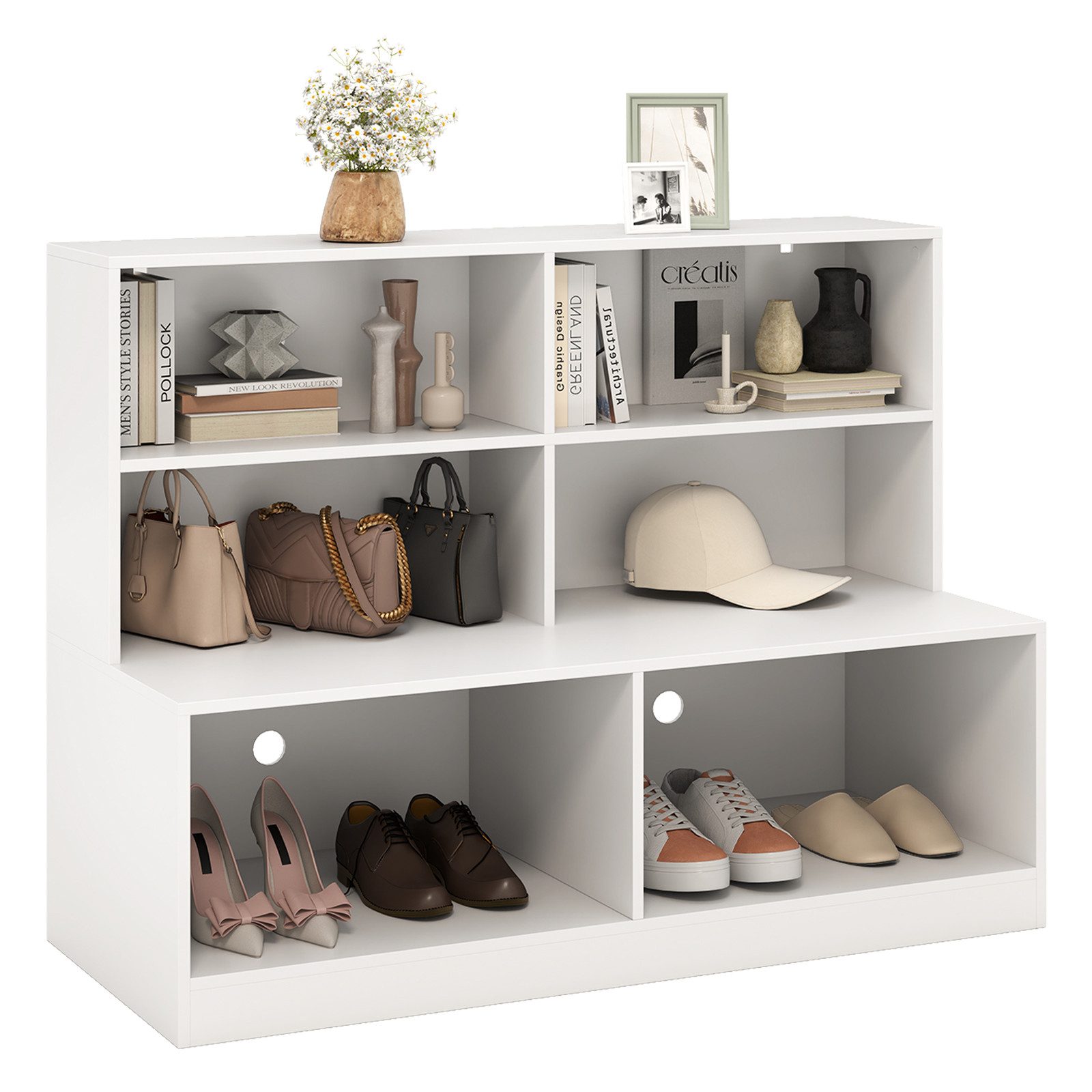 Verwandeln Sie Ihr Zuhause mit Eleganz und Leichtigkeit! Entdecken Sie unser stilvolles 2-in-1-Schuhregal mit Bank – die perfekte Kombination aus Funktion und Stil. Schluss mit Unordnung! Die geräumige Tischplatte, die vier Ablagefächer und die zwei großen Schuhfächer bieten Platz für alles, von Hausschuhen bis zu Stiefeln. Die Sitzfläche trägt bis zu 200 kg und dient gleichzeitig als stabile Schuhwechselbank. Dank unseres Kippschutzes ist die Sicherheit Ihrer Familie ein Kinderspiel. Sechs Lüftungsschlitze sorgen für frische Luft und der erhöhte, leicht zu reinigende Sockel machen es so einfach, eine makellose Umgebung zu schaffen. Sie ist nicht nur praktisch – sie ist ein stilvolles Statement! Ob im Eingangsbereich oder als schicker Organizer im Arbeitszimmer – die Bank verleiht einen Hauch von Klasse. Greifen Sie jetzt zu und genießen Sie die perfekte Kombination aus Stil und Funktionalität!