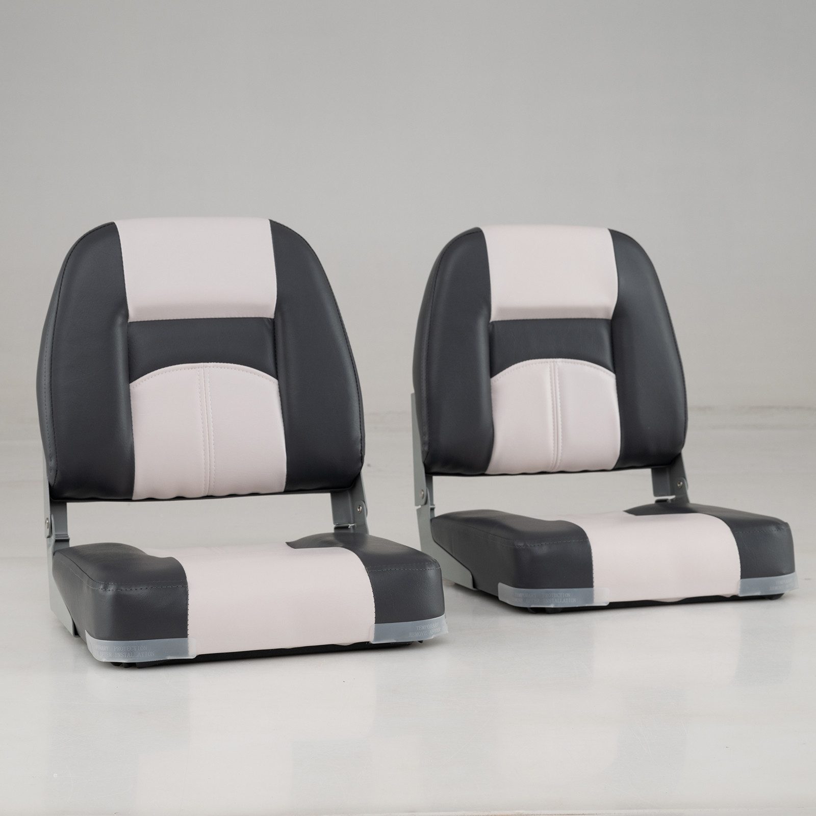 Unser Bootssitz-Set besteht aus zwei Stühlen mit den Maßen 42 x 49 x 51 cm (L x B x H) und bietet unübertroffenen Komfort und Langlebigkeit auf dem Wasser. Diese ergonomisch geformten Sitze sorgen für ultimative Entspannung und verfügen über gepolsterte Rückenlehnen und 7 cm dicke Sitzkissen, die mit weichen Schwämmen gefüllt sind und so für ein luxuriöses Sitzerlebnis auf jeder Fahrt sorgen. Hergestellt aus hochwertigem, sonnen-, wasser- und wetterbeständigem PVC-Leder, halten sie zuverlässig den Strapazen der Meeresumwelt stand. Bei Nichtgebrauch lassen sich die Rückenlehnen einfach umklappen und so platzsparend verstauen. Die Montage ist kinderleicht: Mit den 10 mitgelieferten Schrauben lassen sich die Sitze schnell und einfach an 12,5 x 12,5 cm großen Drehgelenken oder Podesten im Bootsdesign befestigen. Wählen Sie unsere Bootssitze für Komfort, Langlebigkeit und Komfort bei all Ihren Wasserabenteuern.