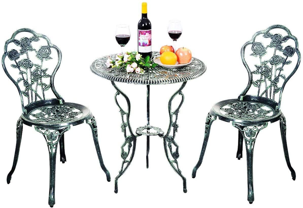 Dies ist eine elegante und klassische Bistro-Tisch & Stühle gesetzt. Es gilt qualitativ hochwertige Aluminium, Pulverbeschichtung, Handwerk, schöne Blätter Design, würdig zu besitzen. Sie können entspannen oder eine glückliche Freizeit mit diesem Set auf Balkon, Garten, Terrasse, Swimmingpool Seite, Außenplätze. Außerdem kann es bei kommerziellen Anlässen verwendet werden: Café, bar, Dessert Geschäfte etc.