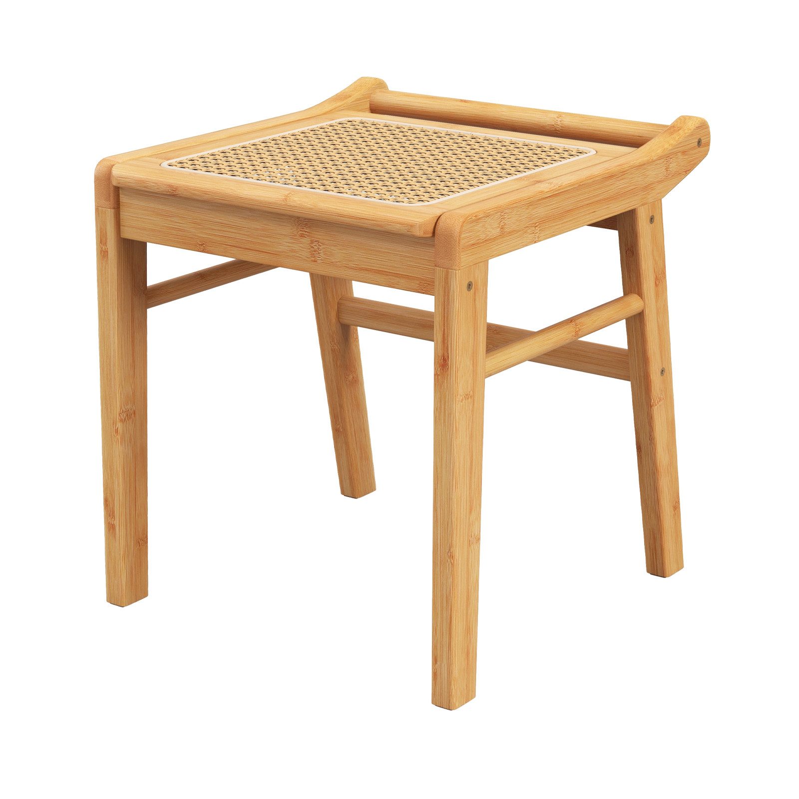 Erfrischen Sie Ihr Interieur mit dem vielseitigen und stilvollen Schminkhocker! Hergestellt aus robustem Bambus, bietet dieser ungiftige und geruchlose Hocker hervorragende Festigkeit und Widerstandsfähigkeit für den langfristigen Gebrauch. Die Details des Hockers zeigen eine bessere Handwerkskunst: Die polierte Oberfläche ist frei von Graten. Extra seitliche Verstärkungsstangen und rutschfeste Füße sorgen für Stabilität. Sie können ihn beispielsweise mit einem Schminktisch verwenden, um einen einzigartigen Stil zu schaffen, oder als bequemen Schuhwechselhocker im Eingangsbereich verwenden. Das platzsparende Design ermöglicht es, ihn in engen Räumen zu platzieren oder problemlos unter einen Tisch zu schieben.