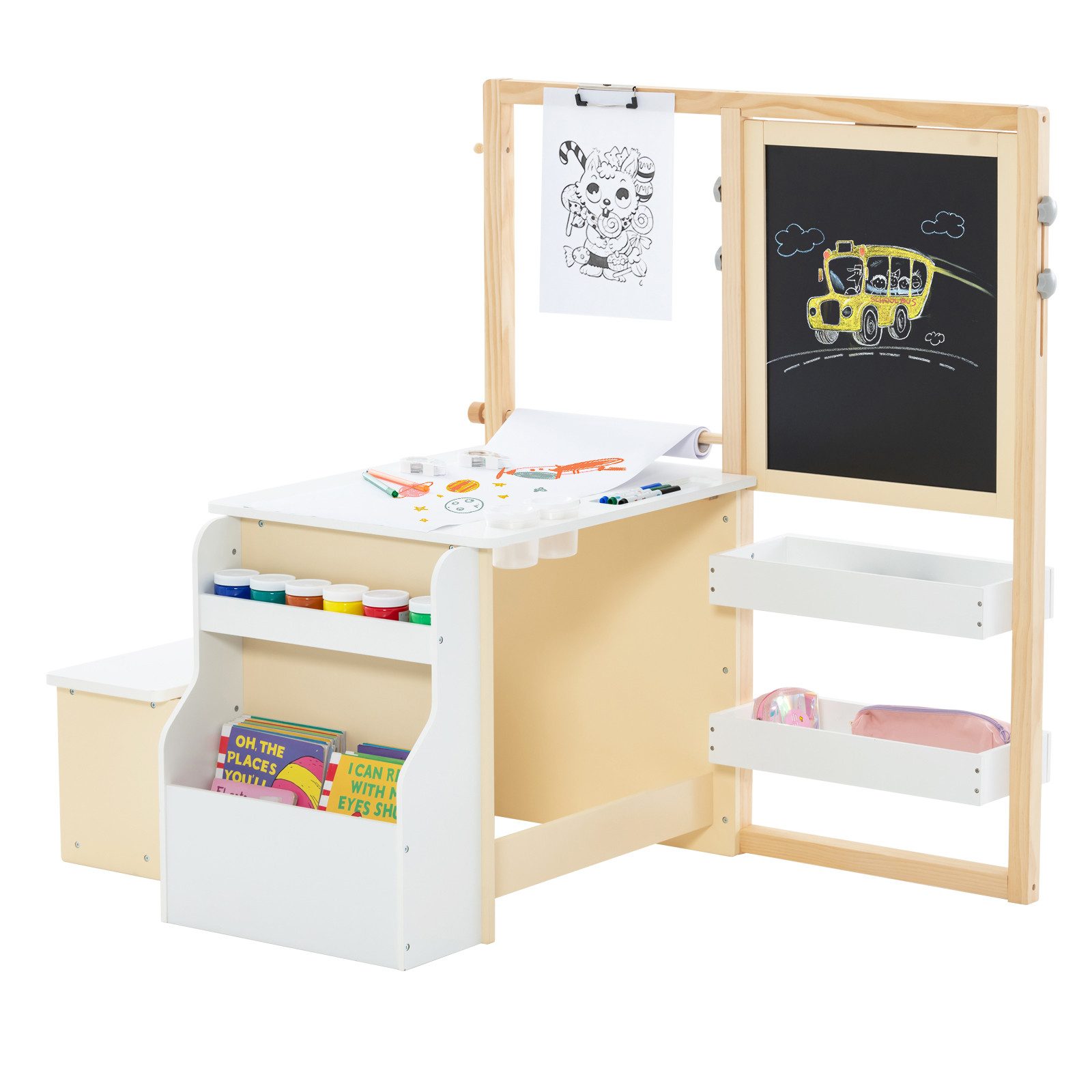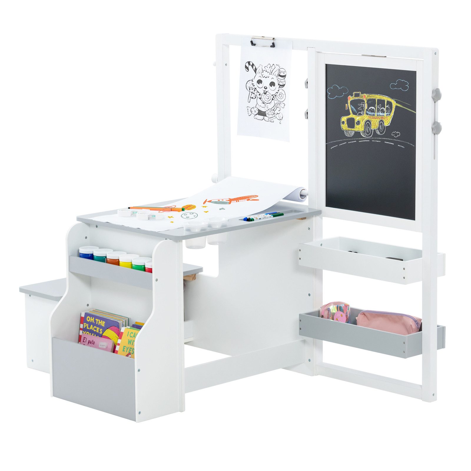 Die doppelseitige Kunststaffelei verfügt über ein magnetisches Whiteboard und eine Kreidetafel für kreatives Zeichnen. Durch das höhenverstellbare Design ist es für Kinder unterschiedlichen Alters geeignet. Die breite Bank bietet Ihren Kindern einen bequemen Ruheplatz zum Lesen, Schreiben oder Essen neben dem Tisch. Dazu sorgt unser Kunsttisch- und Stuhlset für hervorragende Sicherheit und Zuverlässigkeit. Und die glatte Oberfläche lässt sich ganz einfach abwischen, was Ihnen Zeit und Mühe spart.