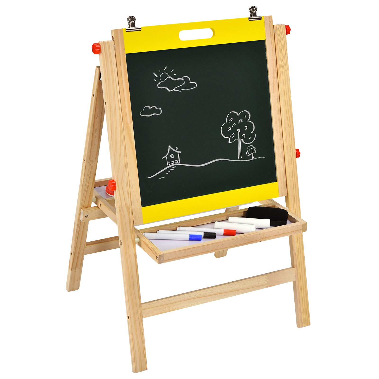 Unsere Kinderstaffelei ist eine wunderbare Wahl, um Zeit mit dem eigenen Nachwuchs zu verbringen. Whiteboard, Tafel und Papierrolle bieten den Kindern viel Platz, um sich kreativ auszuleben. Beim Zeichnen oder Schreiben üben sie gleichzeitig den Umgang mit dem Stift. Durch ihre dreieckige Struktur steht die Staffelei sehr stabil, zudem lässt sie sich durch Knöpfe in der Höhe verstellen und eignet sich somit für Kinder ab 3 Jahren. Durch das klappbare Design lässt sie sich leicht tragen und verstauen. Für einen schnellen und einfachen Aufbau sind eine Anleitung und Zubehör in der Lieferung enthalten.