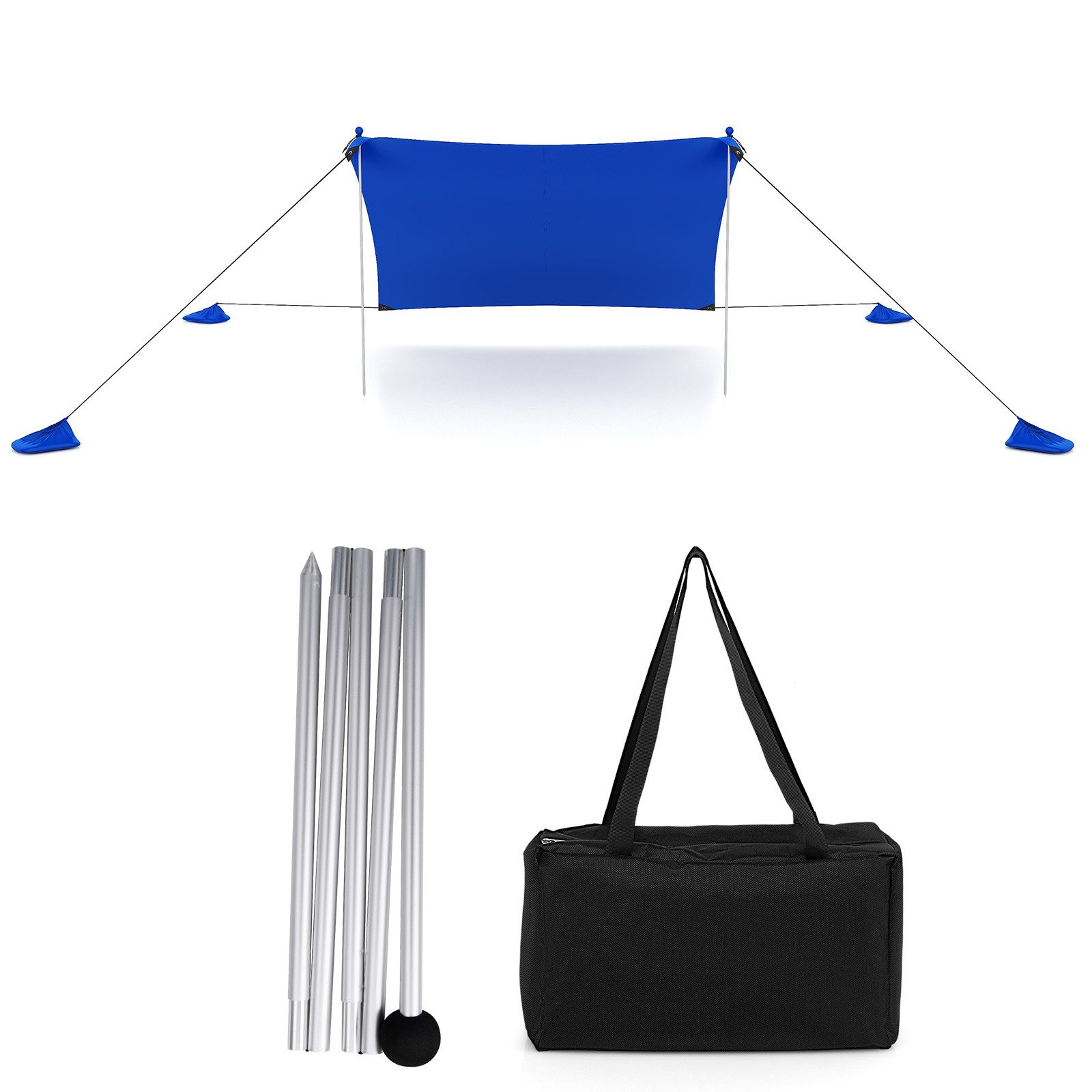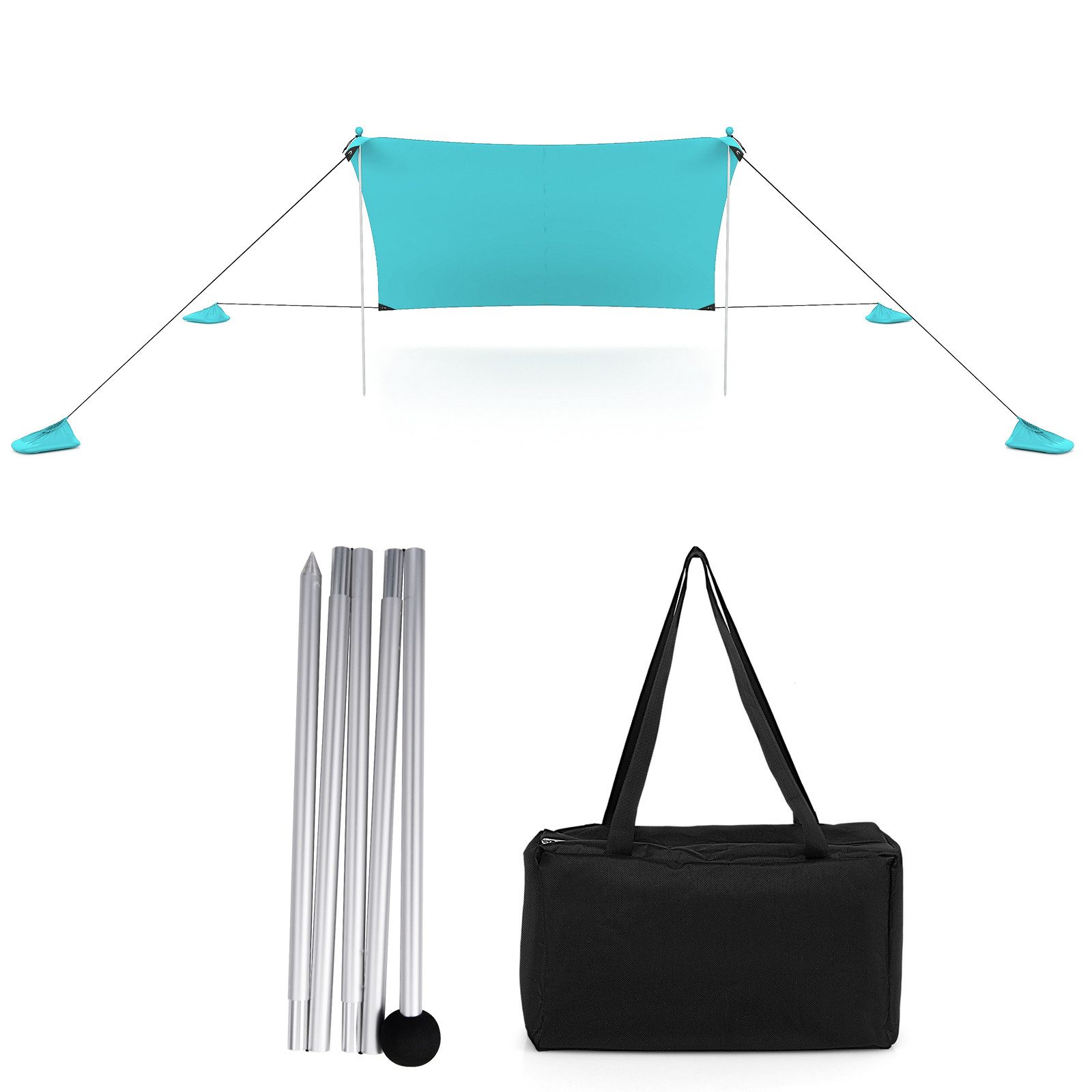 Genießen Sie die Schönheit der Natur mit unserem tragbaren Strand-Familienschutz. Hergestellt aus reißfestem Polyester-Lycra bietet das Stranddach eine Dehnung, die Ihren Platzbedarf erfüllt und gleichzeitig eine überlegene Haltbarkeit verspricht. Dank der Windseile und 4 robusten Bodenheringe bleibt der Familien-Strandschutz an Ort und Stelle. Die klappbaren Stützstangen sind platzsparend und lassen sich leicht verstauen. Mit einer Tragetasche versehen, ist der 2,5 kg leichte Outdoor-Sonnenschutz tragbar und eignet sich für Camping, Picknick oder Angeln. Darüber hinaus stehen verschiedene Platzierungsmethoden zur Verfügung, indem Sie die Anzahl der Stangen ändern.