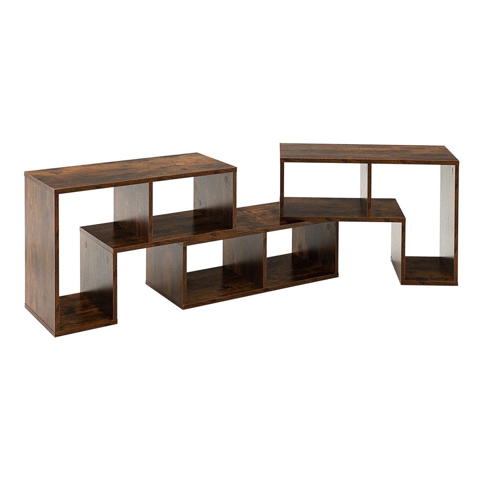 Lassen Sie uns die endlosen Möglichkeiten des 3-teiligen TV-Regals erkunden! Das Produkt verfügt über freie Kombinationen, von denen die gängigsten 3 Stile in den Bildern gezeigt wurden. Da die 2 L-förmigen Regale auf dem rechteckigen gestapelt sind, können sie erweitert oder gedreht werden, um verschiedenen Anforderungen gerecht zu werden. Daher können Sie es als niedrigen TV-Konsolentisch, Eckschrank oder stehendes Präsentationsregal verwenden. Außerdem bieten die 6 verschiedenen Fächer eine geordnete Aufbewahrungslösung für verschiedene Elektronik, Bücher und andere Ornamente. Darüber hinaus sind die gut konstruierten Regale ziemlich robust und langlebig und rutschfeste Pads sind ebenfalls für eine verstärkte Stabilität enthalten. Übrigens hat der Fernsehschrank ein sauberes und minimalistisches Aussehen, wobei die Schraubenlöcher mit Aufklebern bedeckt sind.