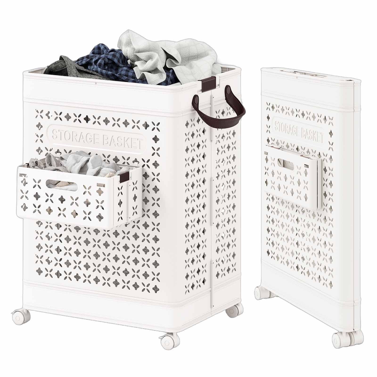 Vereinfachen Sie Ihre Wäsche-Routine mit diesem geräumigen Wäschekorb. Dieser große Wäschekorb kommt mit einem Bonus-Hängekorb für Unterwäsche. Das kompakte Design ermöglicht ein einfaches Falten und Entfalten ohne Werkzeugbedarf und ist ideal für kleine Räume. Mit Griffen und Universalrädern können Sie diesen Korb mühelos bewegen. Diese vielseitige Aufbewahrungslösung ist nicht nur auf Wäsche beschränkt und kann verschiedene Artikel wie Spielzeug, Decken und Sportgeräte lagern.