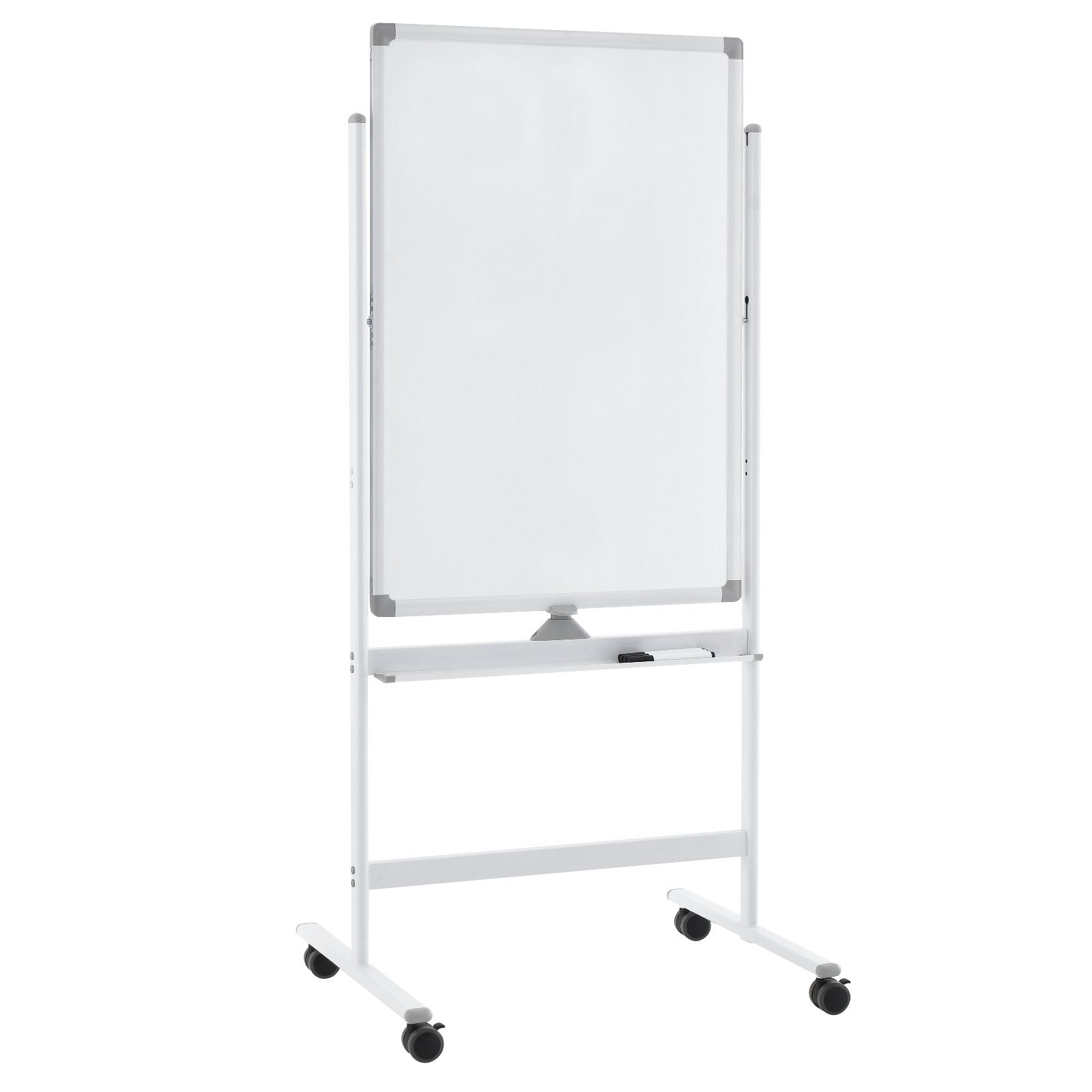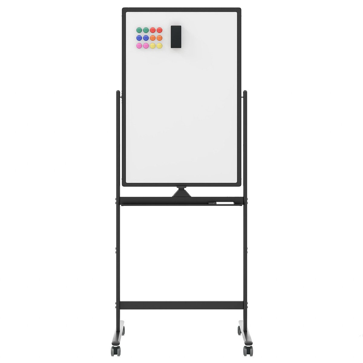 Dieses doppelseitige, feststellbare Whiteboard eignet sich sowohl für Erwachsene als auch für Kinder und wird zu einem unverzichtbaren Werkzeug für Unterricht, Präsentationen und mehr! Dank der verstellbaren Höhe ist dieses Whiteboard für Benutzer unterschiedlichen Alters geeignet, egal ob für Erwachsene oder Kinder. Für zusätzlichen Komfort ist das Whiteboard mit einer Stiftablage ausgestattet, damit Ihre Markierer organisiert und griffbereit bleiben. Darüber hinaus sind in diesem Produkt 6 schwarze Marker, 1 Tafellöscher, 12 Magnete und 2 Installationswerkzeuge enthalten. Mit diesem umfassenden Set haben Sie alles, was Sie brauchen, um sofort loszulegen. Nicht zuletzt ist die Flipchart mit 4 feststellbaren Rädern ausgestattet, um eine hervorragende Mobilität und Stabilität während der Nutzung zu gewährleisten.