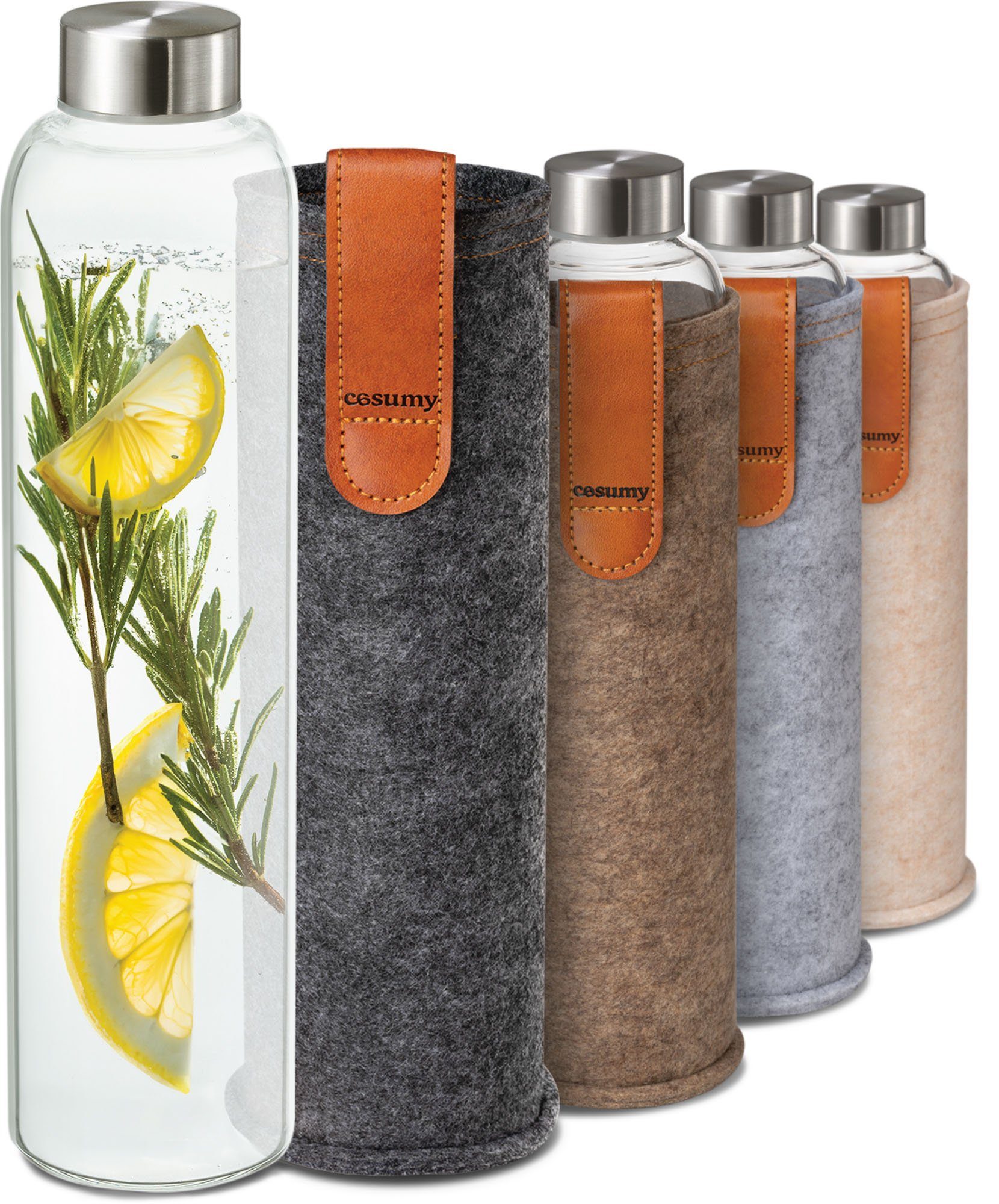 Umweltfreundliche Glasflasche 750ml aus hitzebeständigem & robustem Borosilikatglas | Inkl. Schützender Filztasche für bruchsicheren Transport | Durchmesser 7 cm | Höhe 28 cm.