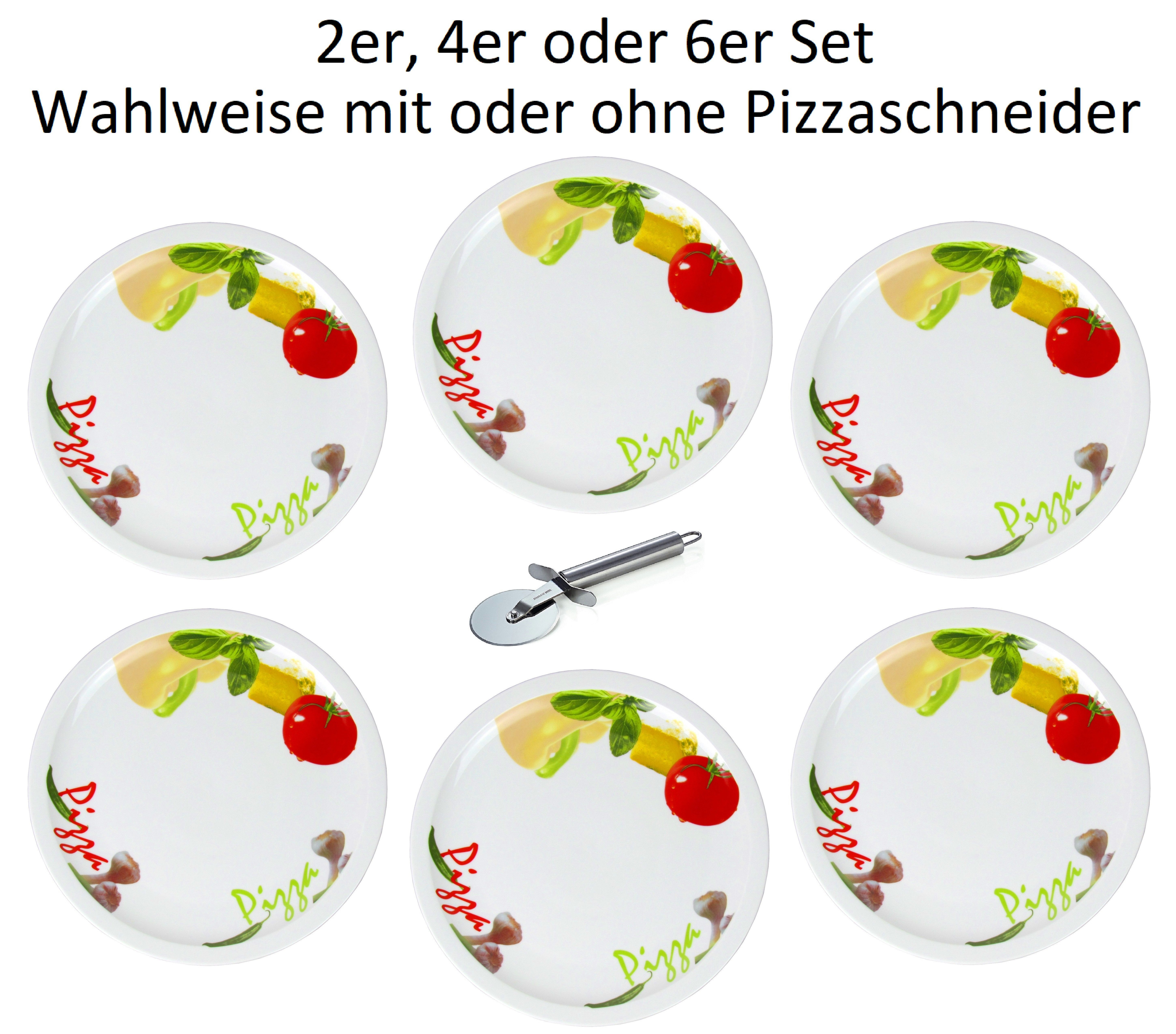 2, 4 oder 6 Stück Pizzateller wahlweise inkl. Pizzaschneider