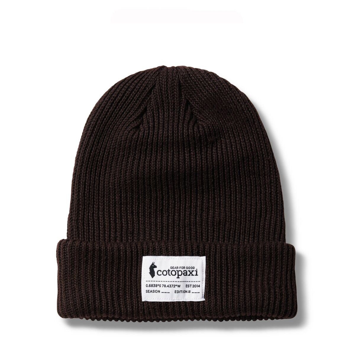 Die Cotopaxi Wharf Beanie besitzt einen Logopatch auf der Vorderseite und besteht aus einem weichen Material.