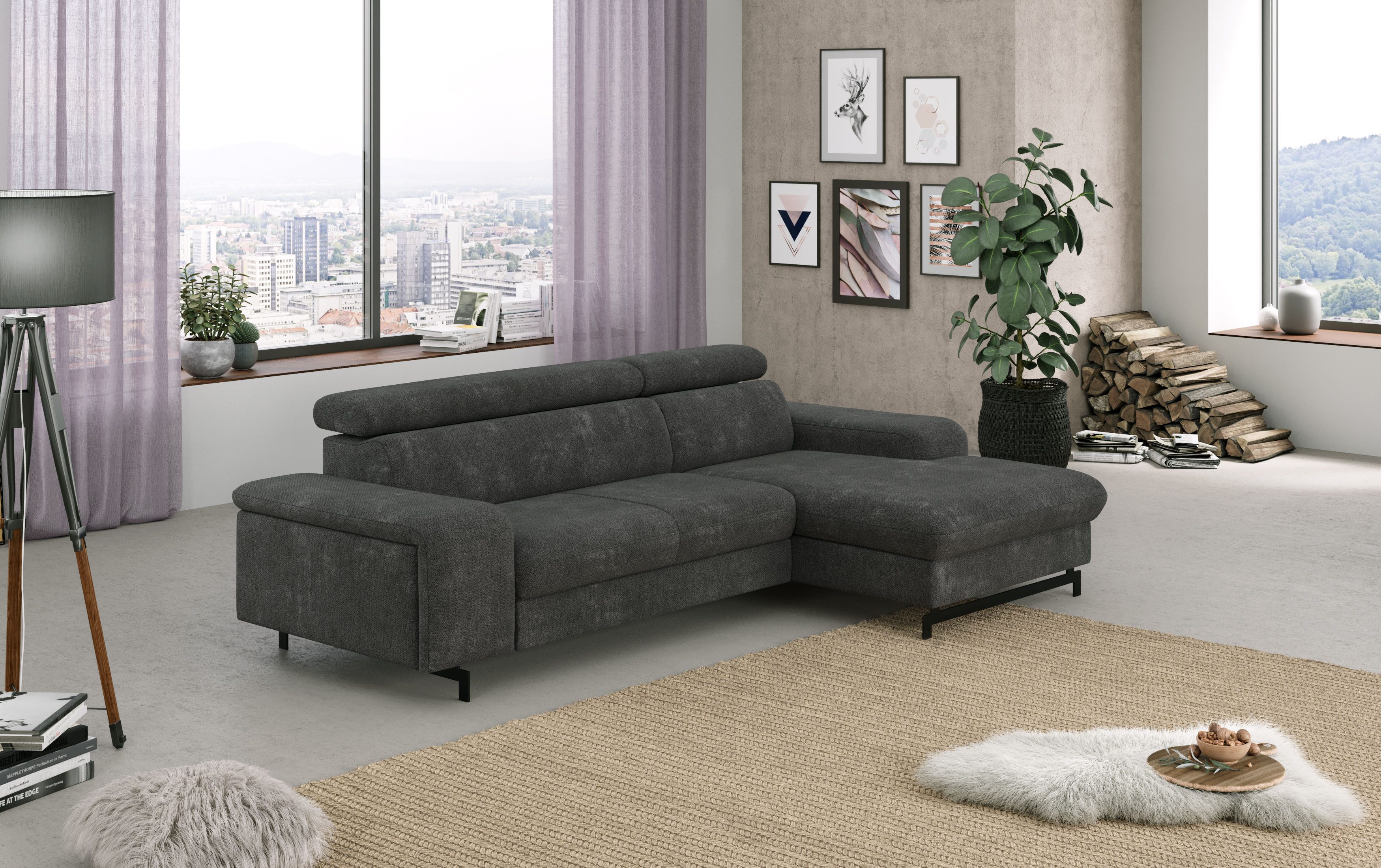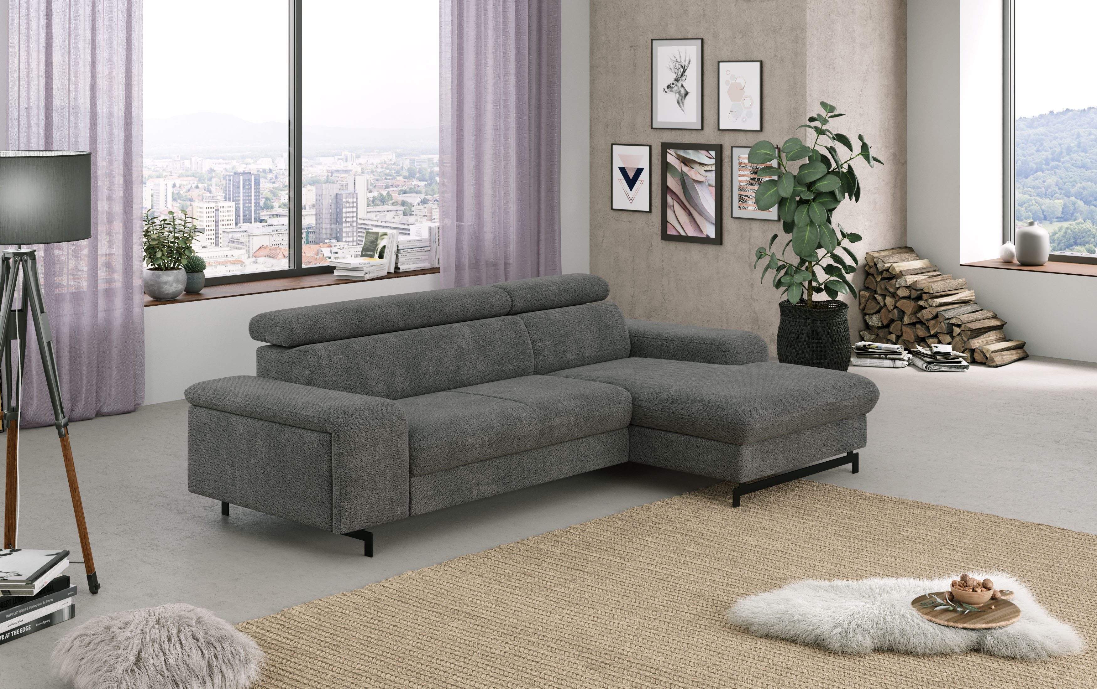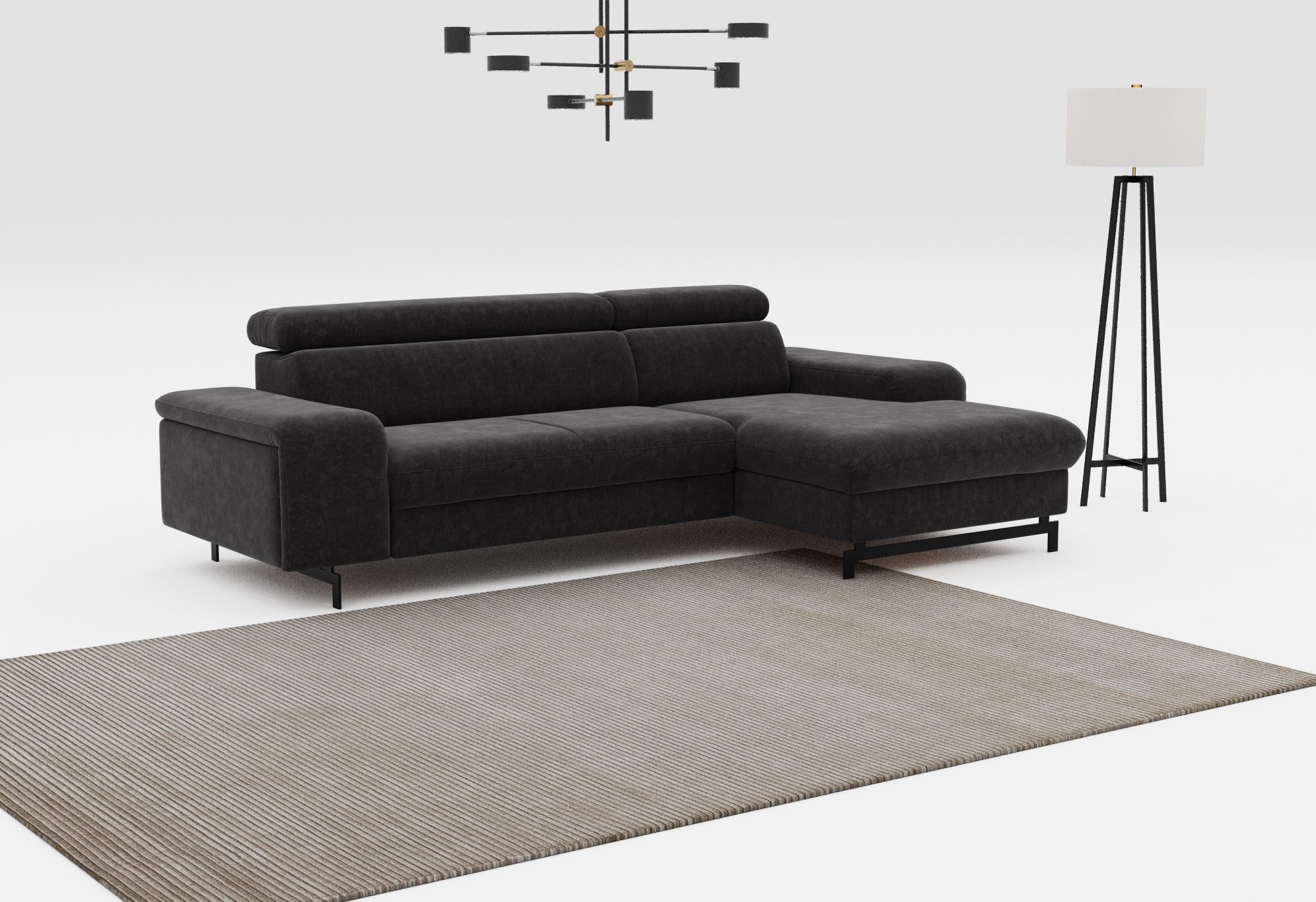 Dieses Ecksofa »Emma L-Form« von COTTA ist mit PUR-Schaumstoff gepolstert, der für eine gute Sitzqualität und lange Lebensdauer steht. Zudem handelt es sich hierbei um ein echtes Platzwunder, da es mit einem ausziehbaren Bettkasten versehen und somit Schlaf- und Ruhezone in einem ist. Beim Ecksofa befindet sich die Recamiere, von vorne betrachtet, rechts. Die maximale Belastbarkeit pro Sitzplatz liegt bei einem Gewicht von 120 Kilogramm. Der strukturierte Bezug überzeugt durch seine pflegeleichte und hautsympathische Eigenschaft. Aus Liebe zum Detail wurde dieses Modell von Hand angefertigt.