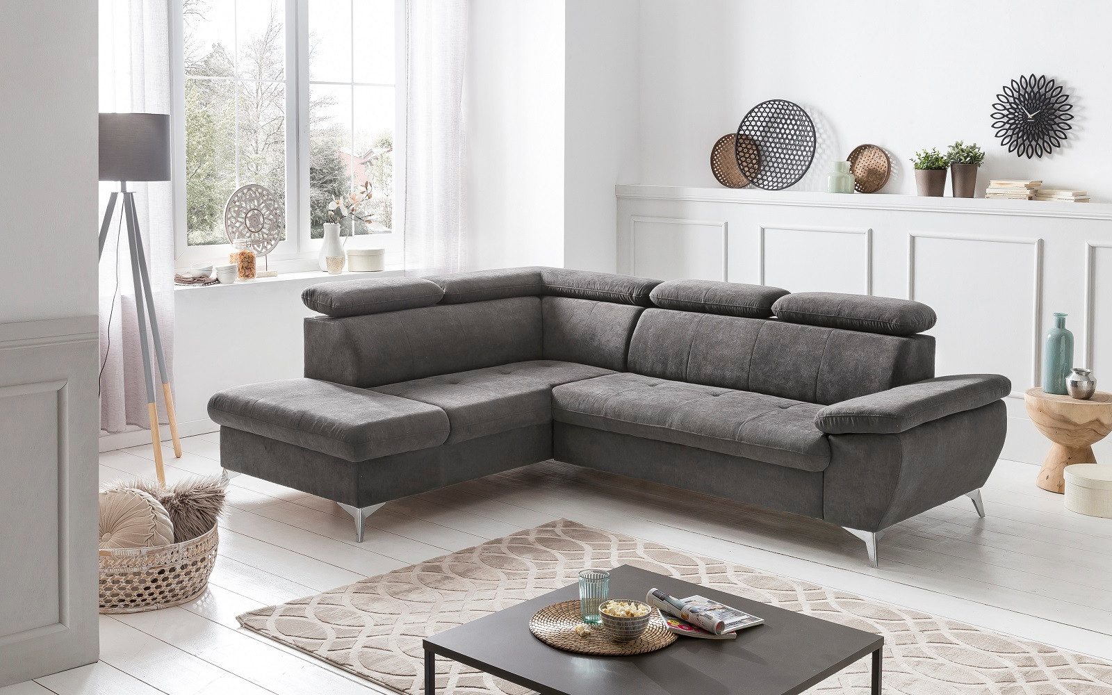 Mit dem Gisele Ecksofa mit Schlaffunktion und Bettkasten wählen Sie ein vielseitiges Möbelstück, das Design und Funktionalität ideal kombiniert. Entscheiden Sie sich für Ihre Wunschfarbe und genießen Sie entspannte Stunden in Ihrem Zuhause!