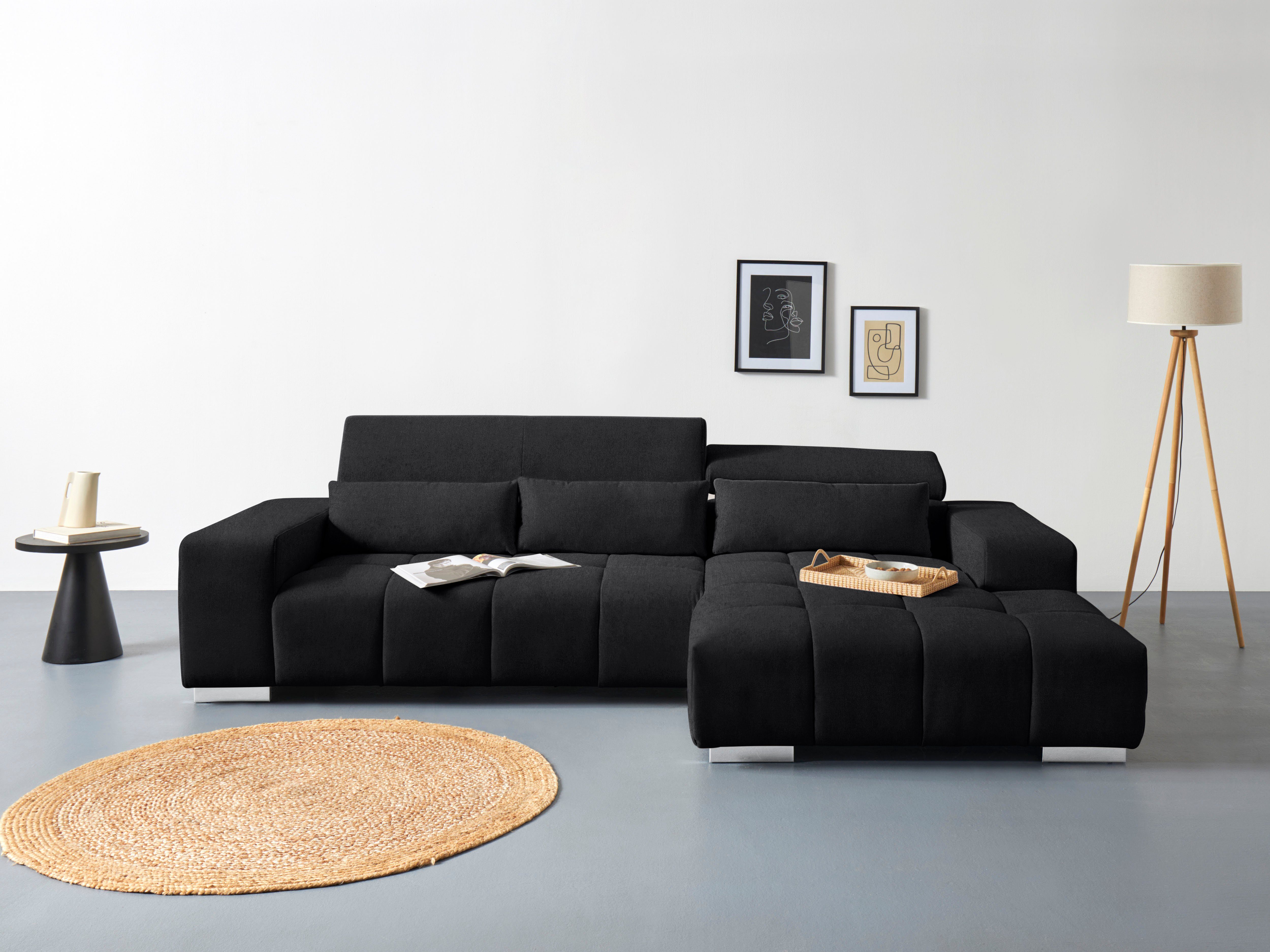 Durch die hochwertige Wellenunterfederung wird die Sitzfläche des Ecksofas »Orion L-Form« von COTTA gut gefedert und bleibt dauerhaft elastisch. Worüber du dich auch freuen kannst, ist die integrierte Kopfstütze, die das Sitzen noch bequemer. Das Produkt ist manuell verstellbar, sodass du die Ausrichtung mit einer einfachen Bewegung anpassen kannst. Von vorne betrachtet ist die Recamiere nach rechts ausgerichtet. Die maximale Belastbarkeit pro Sitzplatz liegt bei einem Gewicht von 120 Kilogramm. Der hochwertige Strukturstoff ist pflegeleicht und hautsympathisch und überzeugt durch seine Komforteigenschaften. Aus Liebe zum Detail wurde dieses Modell von Hand angefertigt.