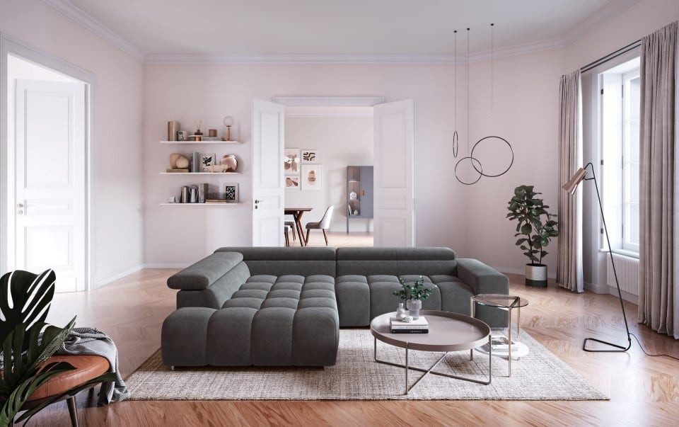 Das Ecksofa Orion von Cotta ist die perfekte Wahl für Ihr Wohnzimmer. Mit seinem modernen Design, den verstellbaren Kopflehnen und einem weichen Chenille-Bezug überzeugt es auf ganzer Linie.