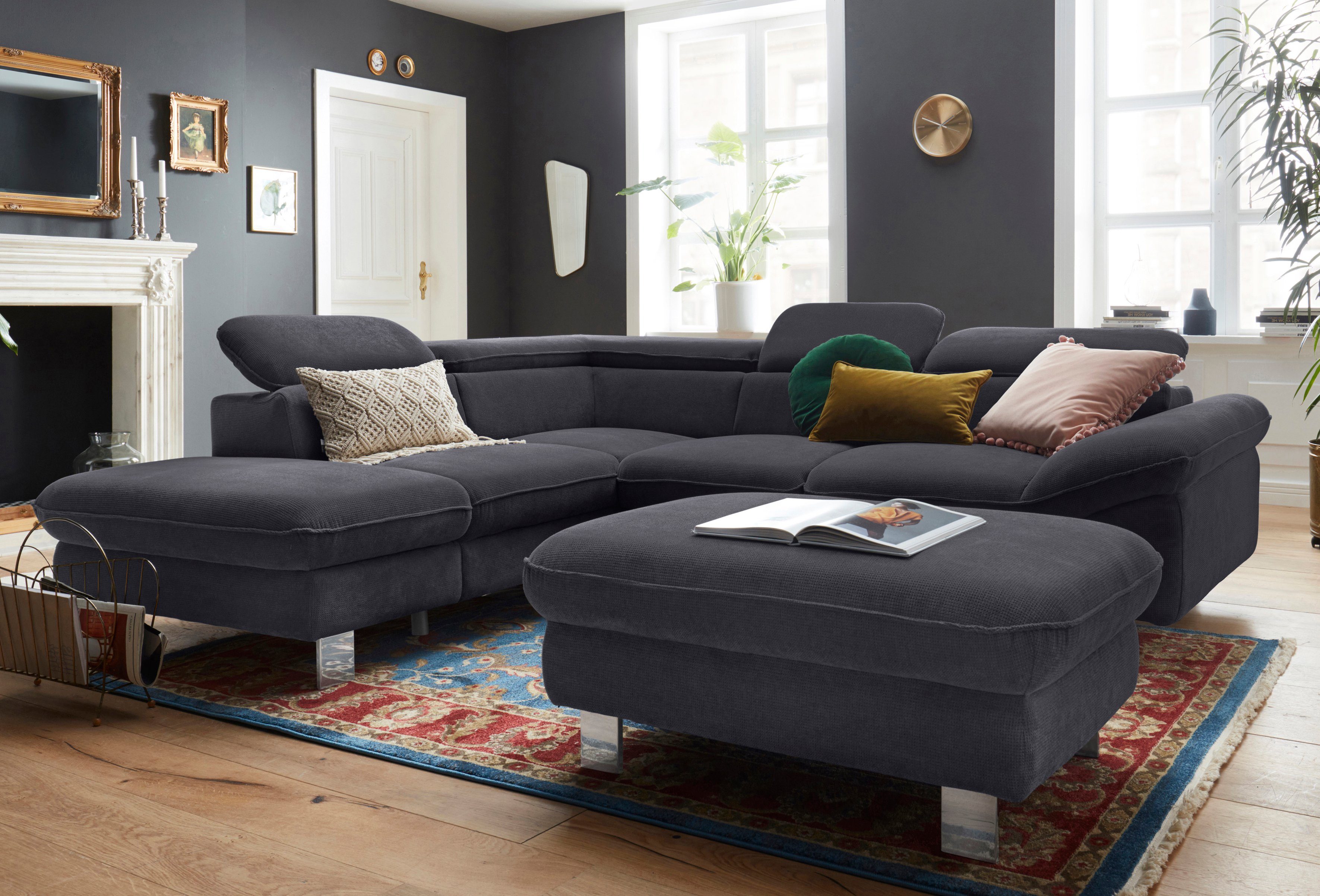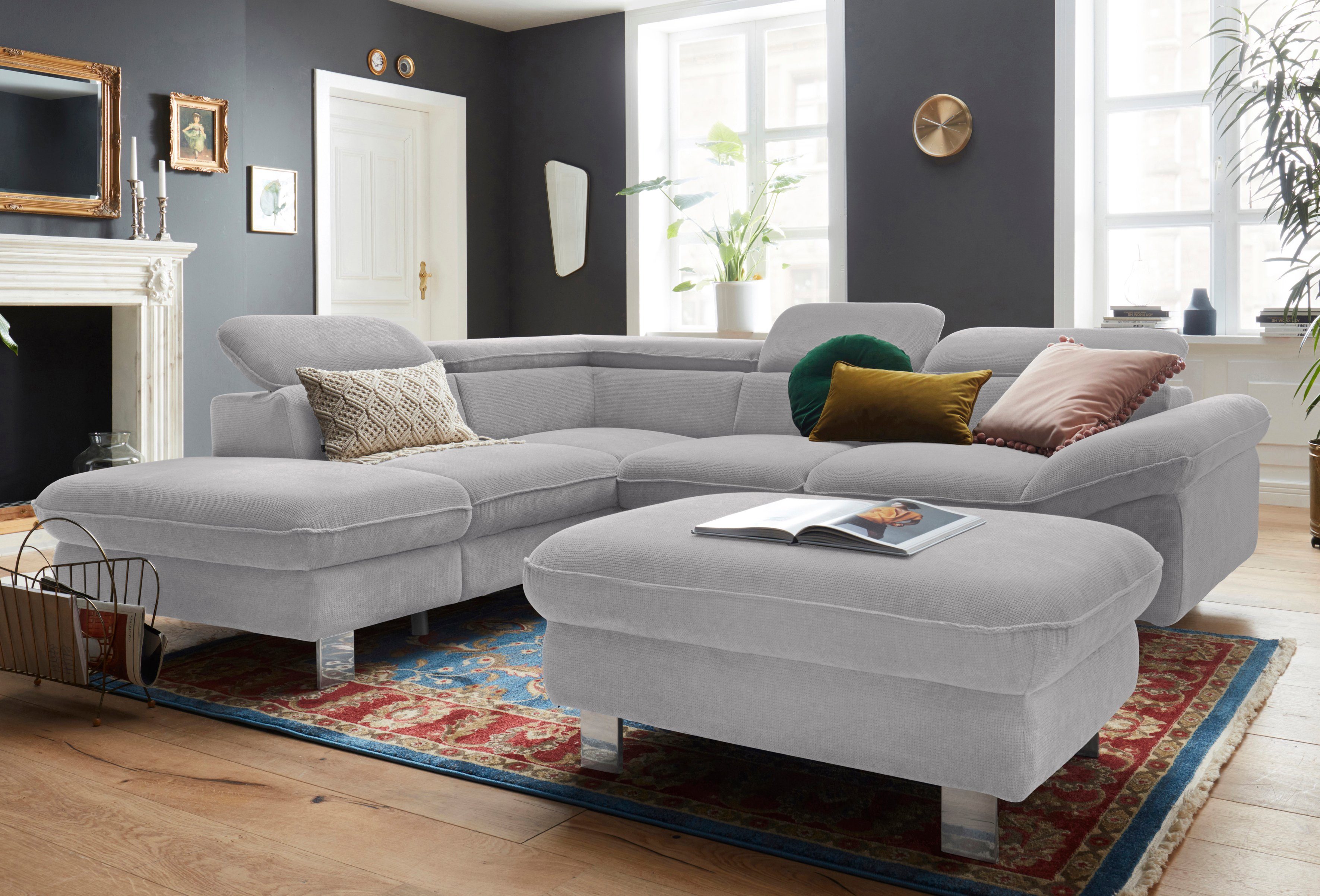 (Set, 2-tlg), Set bestehend aus: Ecksofa mit Kopfteilverstellung & Hocker