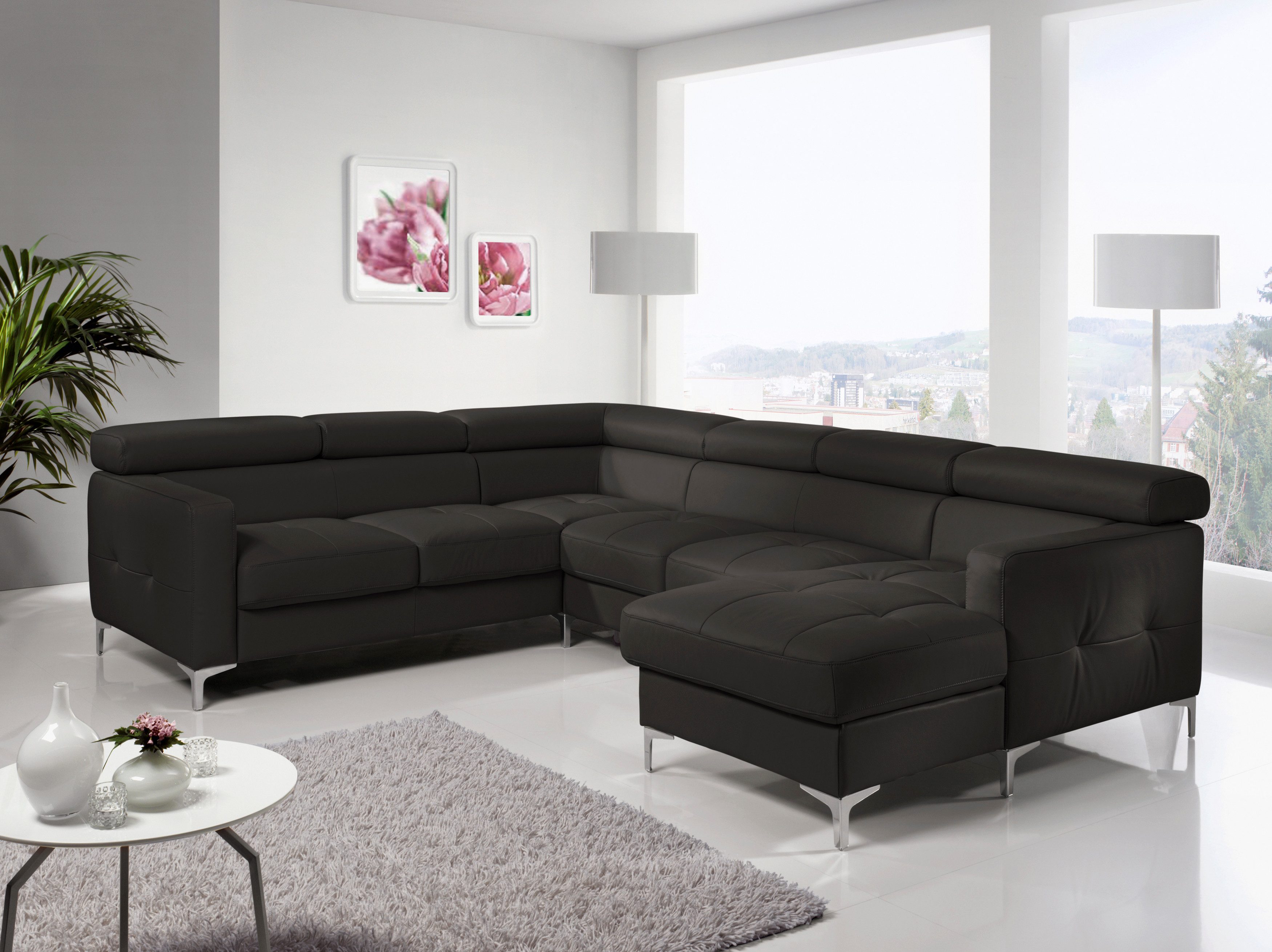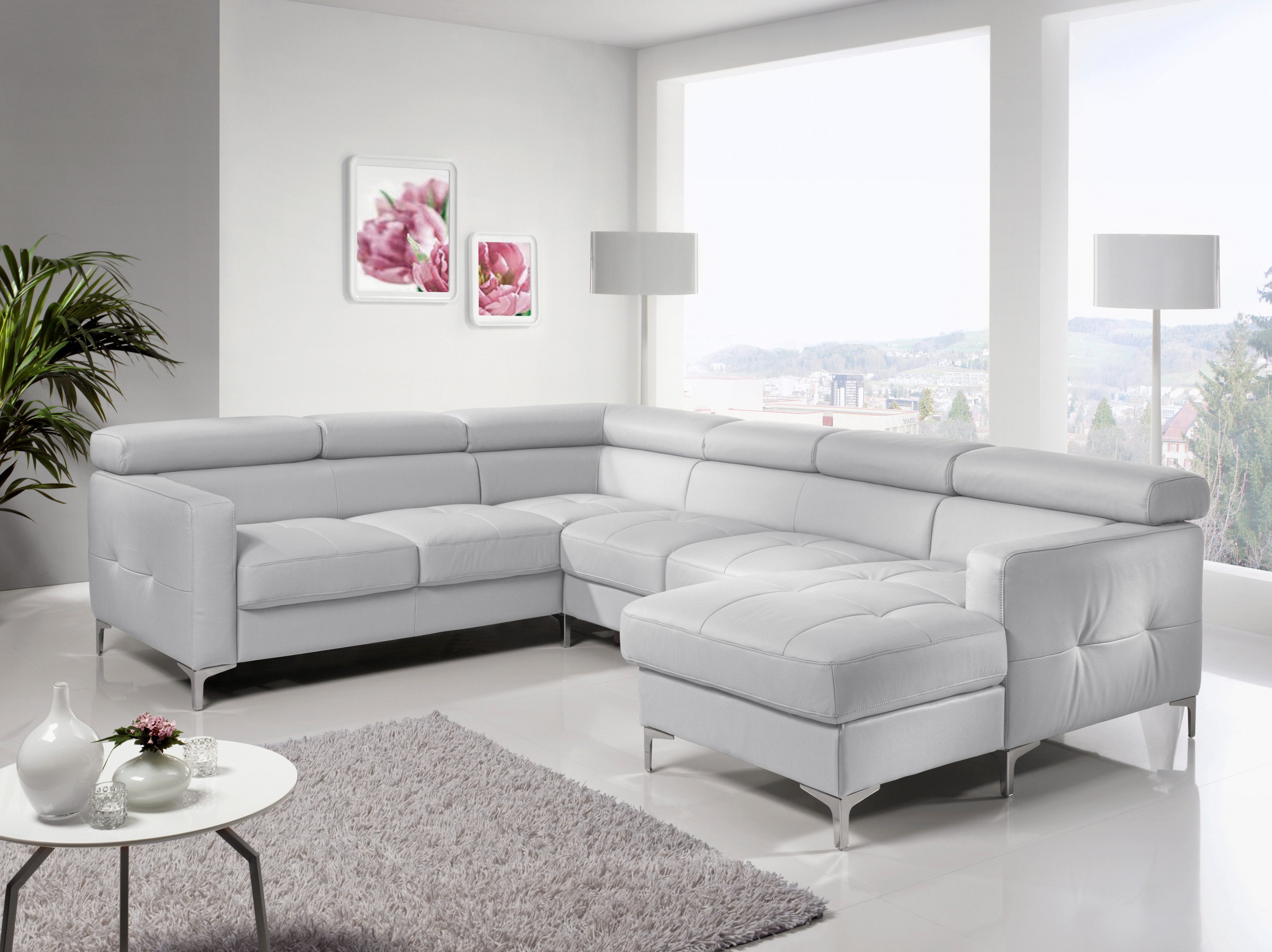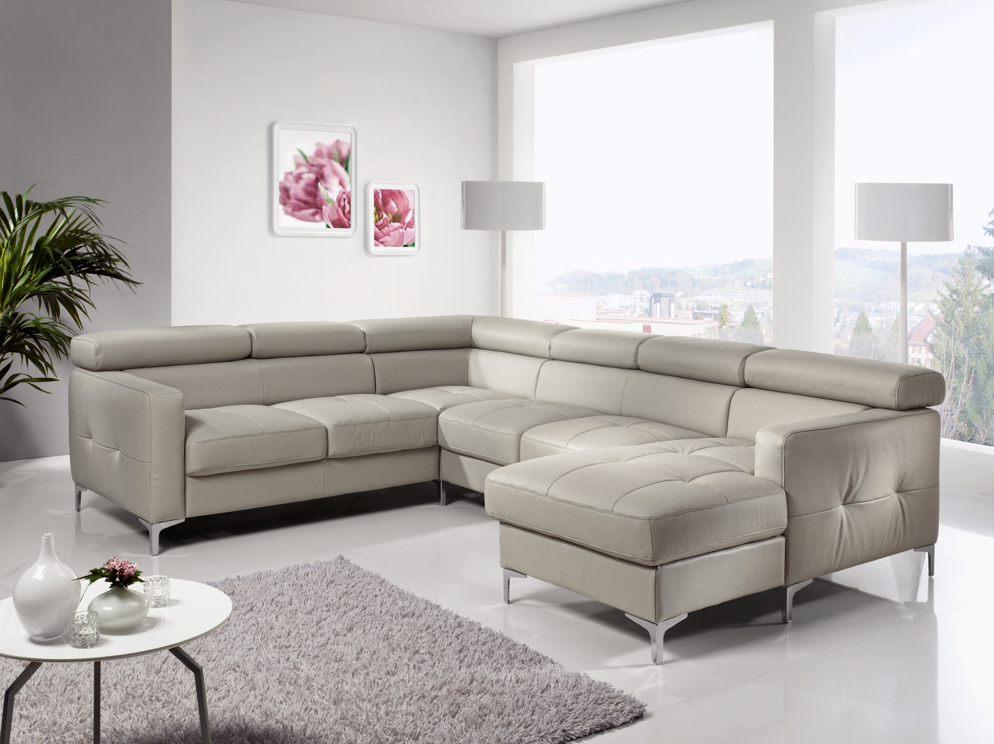 Bezogen ist die Wohnlandschaft mit Pampas Madras Echtleder – einem pigmentierten, geprägten Leder mit besonders robuster Oberfläche. Die pflegeleichte Beschaffenheit erlaubt eine schonende Reinigung mit einem leicht feuchten Tuch. Auf den Einsatz aggressiver Reinigungsmittel oder fetthaltiger Pflegeprodukte sollte verzichtet werden, um das Leder langfristig zu erhalten.