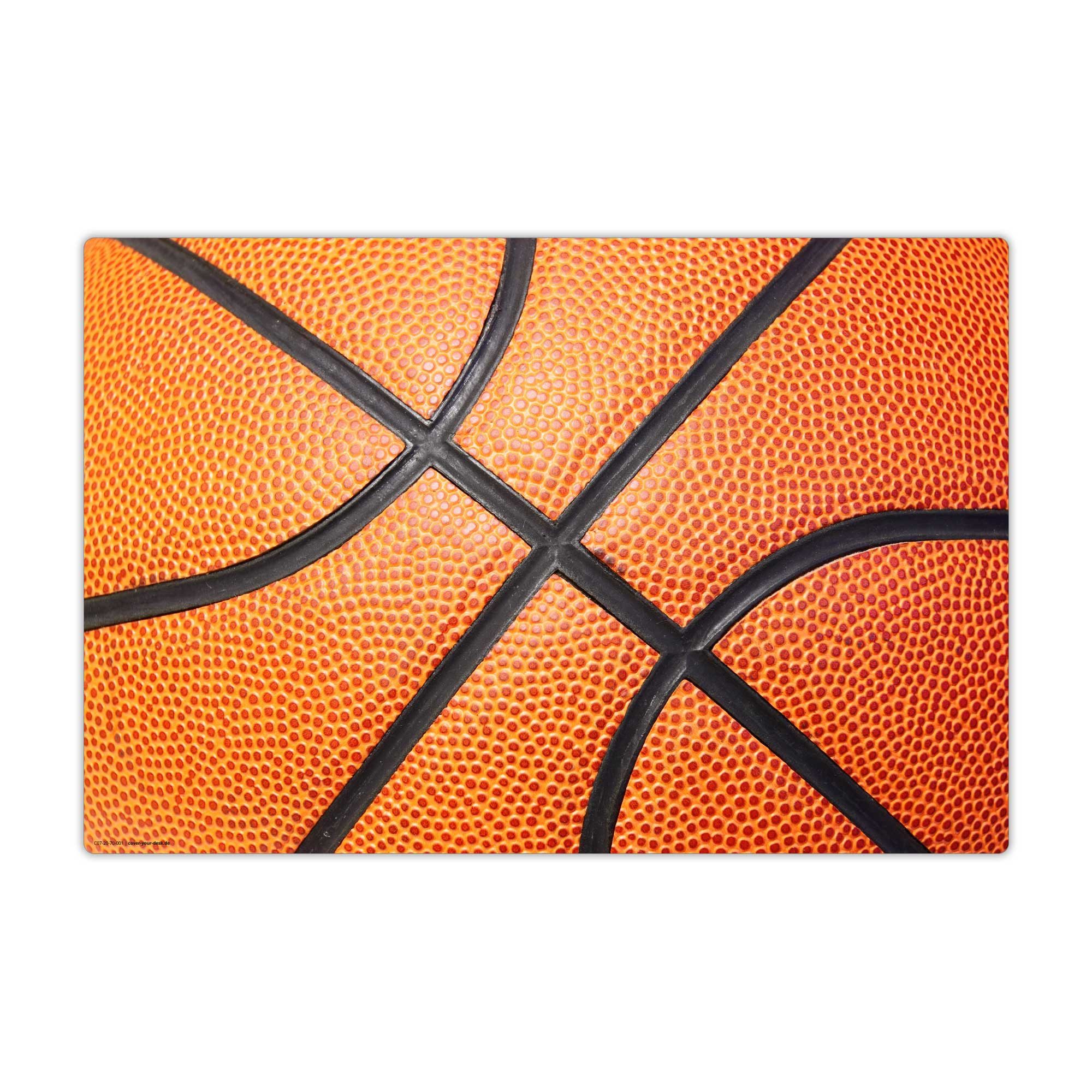 Dieses Motiv bringt Sportfeeling direkt auf den Schreibtisch: In extremer Nahaufnahme zeigt es die strukturierte Oberfläche eines Basketballs mit seiner typischen orangefarbenen Lederoptik und den schwarzen Linien. Die feine Körnung und die kräftigen Farben verleihen dem Bild eine dynamische, energiegeladene Wirkung – fast so, als könnte man den Ball gleich anfassen und losspielen. Ideal als Schreibunterlage, Tischmatte oder Bastelunterlage, bietet dieses sportliche Design nicht nur Schutz für die Tischoberfläche, sondern motiviert auch zu Bewegung und Aktivität. Besonders geeignet ist das Motiv für sportbegeisterte Kinder, Jugendliche oder Basketball-Fans jeden Alters – unabhängig vom Geschlecht. Es passt hervorragend auf Schreibtische im Kinderzimmer, Hobbyraum oder Sportvereinsheim und bringt ein Stück Spielfeld-Flair in den Alltag. Ein echter Hingucker für alle, die den Basketball lieben und gleichzeitig Wert auf eine robuste, funktionale und stylische Arbeitsfläche legen. Cover-your-desk Schreibtischunterlagen für Kinder und Erwachsene haben eine tolle Haptik und bestehen aus 1,6 mm dickem, erstklassigem Premium-Vinyl. Das Material ist besonders pflegeleicht, abwaschbar und hygienisch. Zudem sind die Tischauflagen robust und strapazierfähig. Deine Tischoberfläche ist bestens vor äußeren Einflüssen, wie z. B. Flecken oder Kratzern, geschützt. Die Ecken haben wir für dich leicht abgerundet. 60 x 40 cm und 70 x 50 cm ist ein absolut praktisches Format und bietet genug Arbeitsfläche für Stifte, Malsachen oder andere Schulmaterialien. Unsere Schreibunterlagen sind ideal für Homeschooling und Homeoffice, sind langlebig sowie umweltfreundlich und zu 100 % recyclebar. Die Tischunterlagen werden mit einem hochwertigen fotorealistischen Druck produziert, was sie zu einem stylischen Highlight auf deinem Schreibtisch machen. Sie sind die perfekte Kombination aus tollem, individuellem Design und praktischem Schutz. Je nach Motiv, haben die Schreibunterlagen einen tollen Lerneffekt für die Kinder. Все unsere Produkte weisen eine hochwertige Qualität auf und sind made in Germany. Überzeuge dich selbst! Produkteigenschaft: Maße: Rechteckig (LxBxH) 60 x 40 und 70 x 50 x 1,6mm Material: Vinyl mit hohem Schreibkomfort Ecken: abgerundet Oberfläche: wasserabweisend, abwischbar, robust, matt, glatt Rückseite: rutschhemmend Verwendung: Schreibunterlage, Schreibtischunterlage, Tischunterlage, Malunterlage, Mauspad, Laptopunterlage, Notebookunterlage, Gaming Mousepad