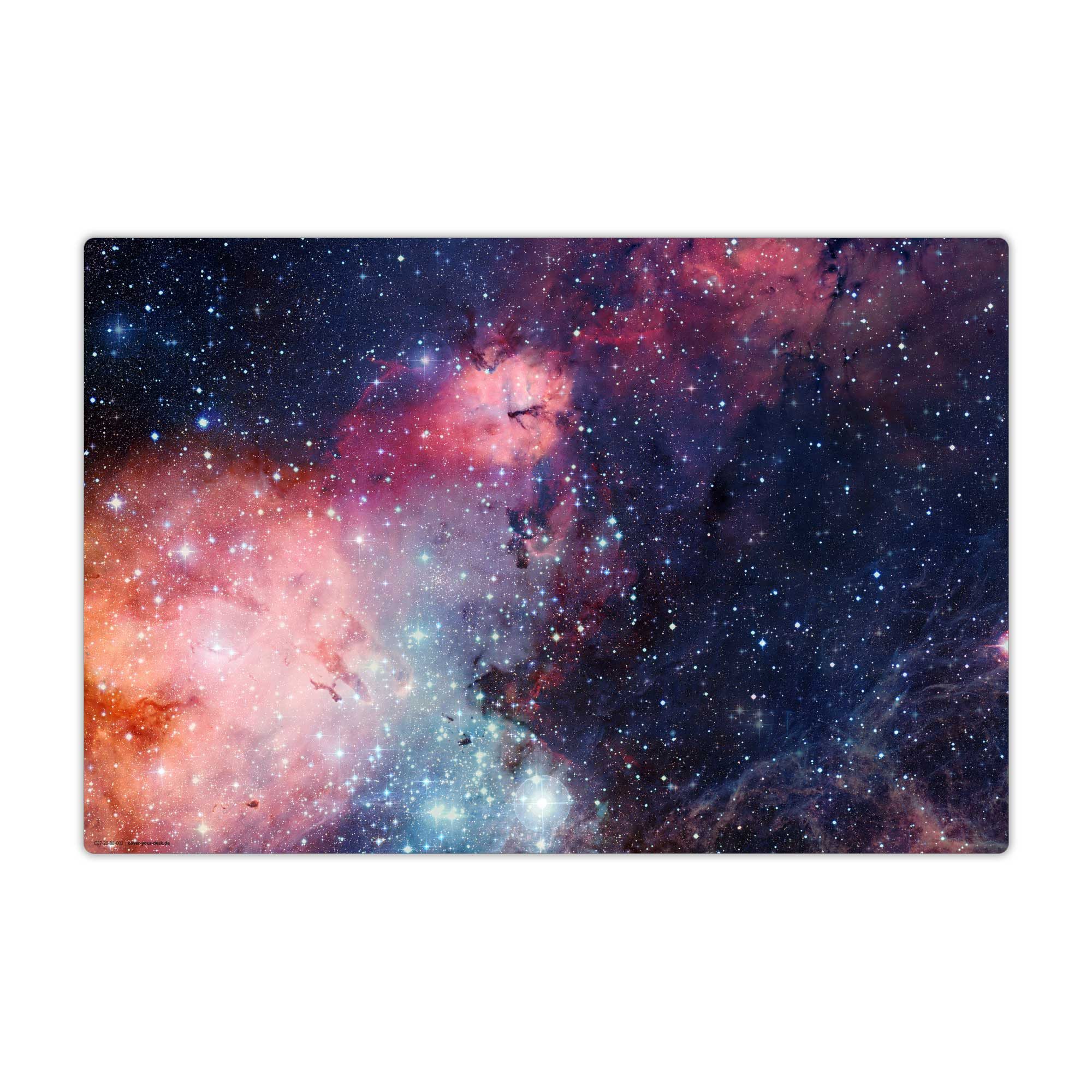 Cooles Motiv einer entfernten Galaxie mit buntem Weltraumstaub und vielen Sternen. Die unterschiedlichen Rottöne, die hellen Sterne und der schwarze Hintergrund macht diese Schreibtischunterlage zu einem schönen Farbmix.