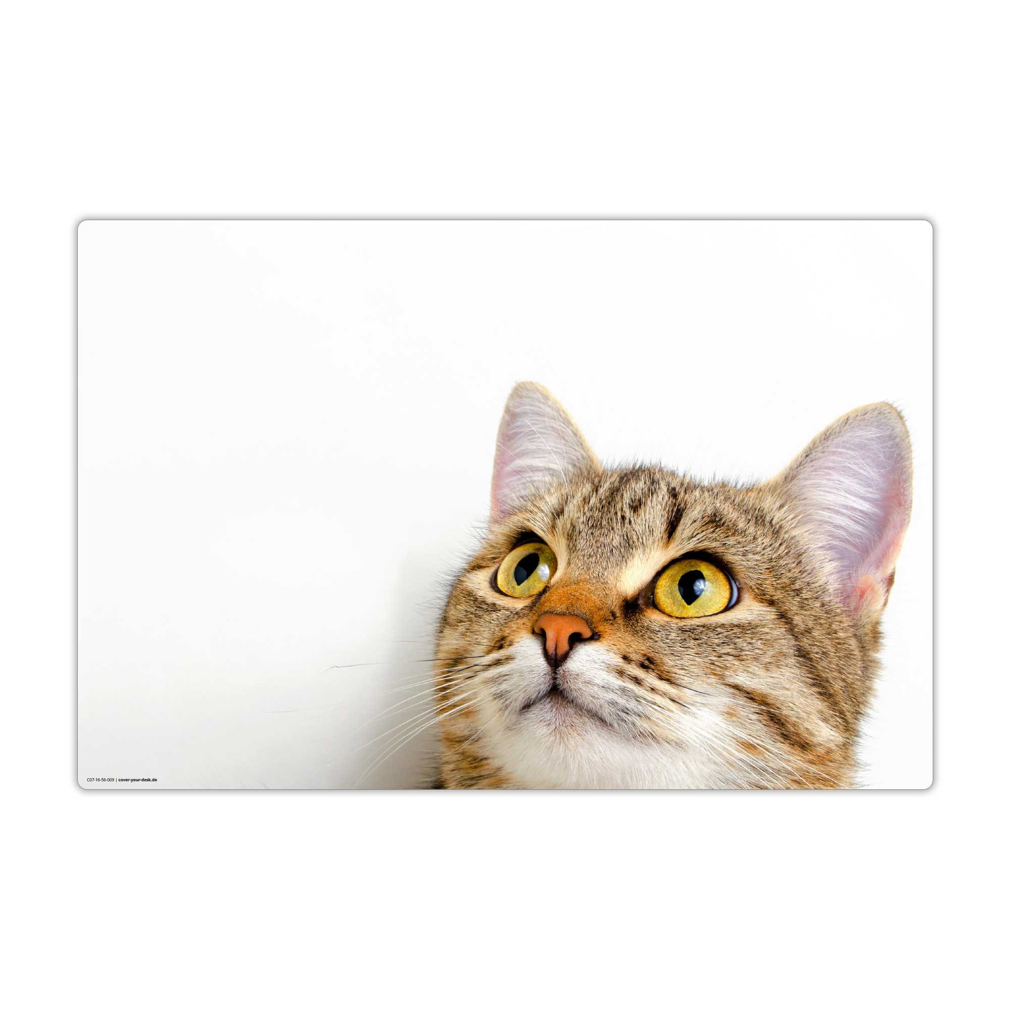 Eine schöne Schreibtischunterlage für Kinder und Erwachsene mit einer süß dreinblickenden Katze. Eignet sich auch als Napfunterlage
