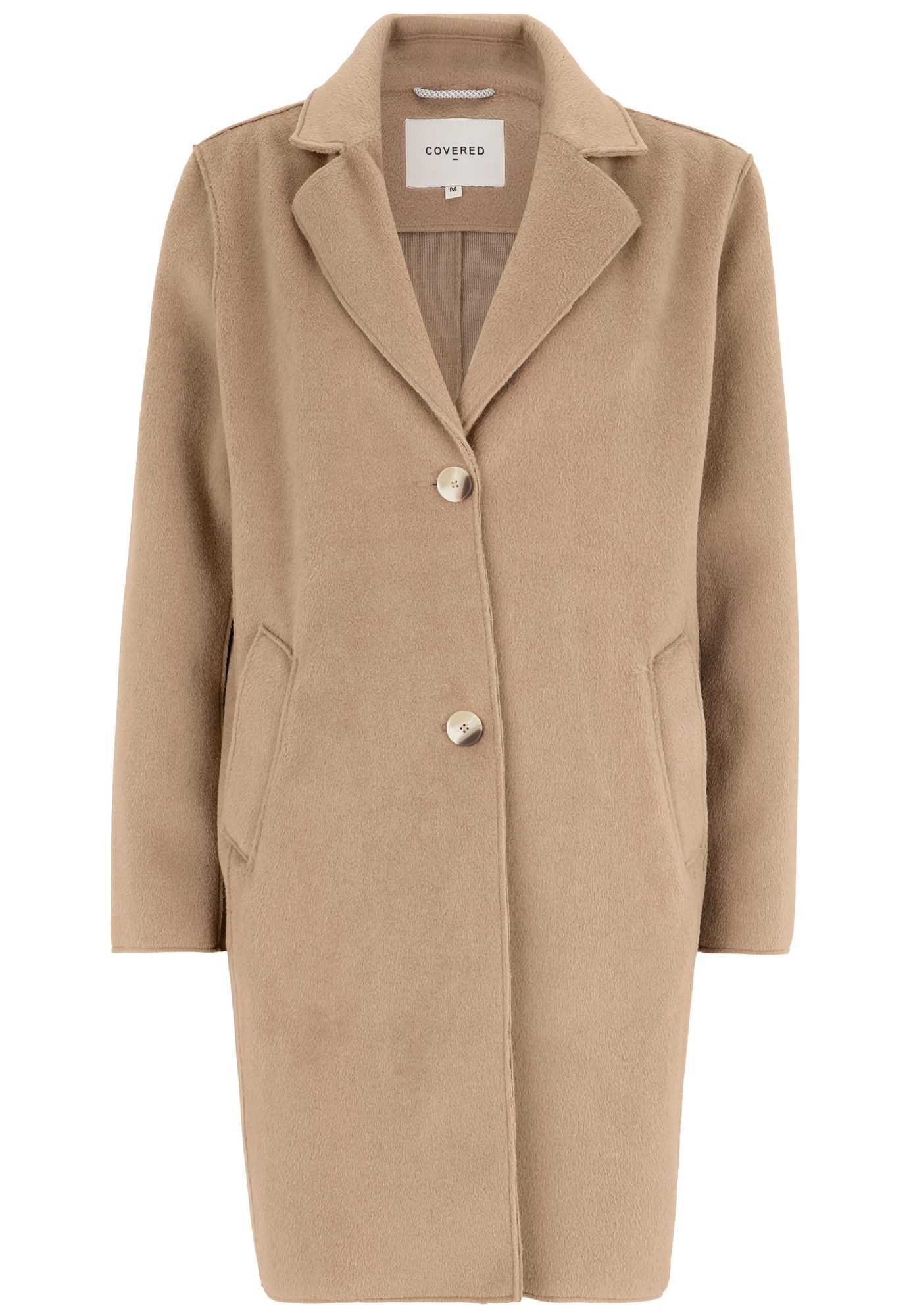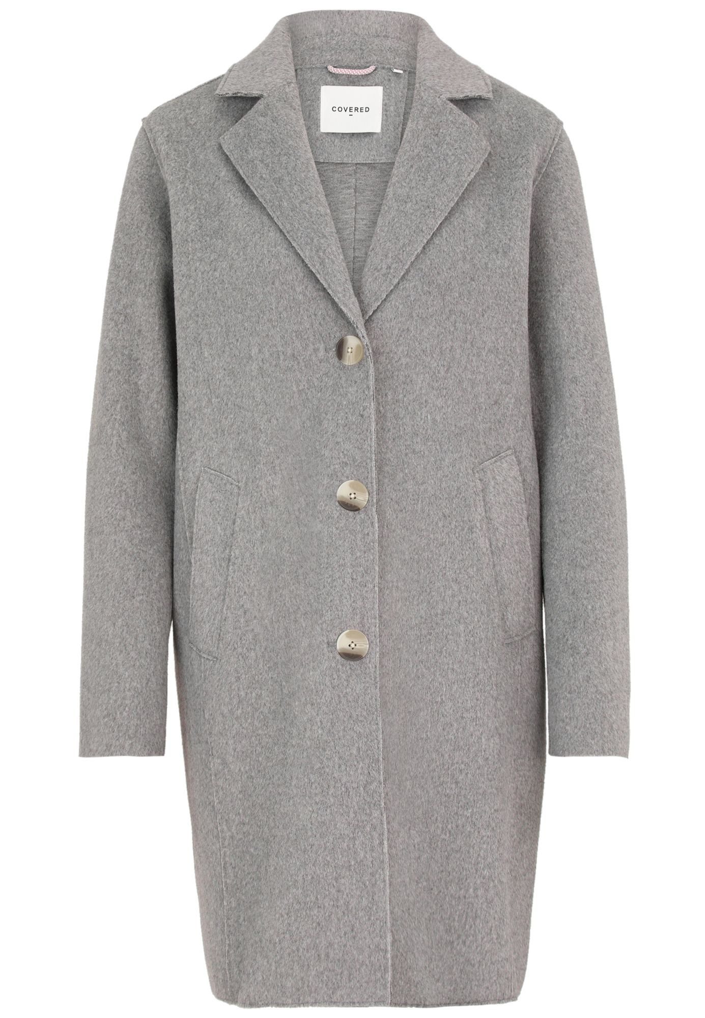 Besondere Merkmale | Reverskragen, Wollmantel-Optik, Hornoptik-Knöpfe, Schlitz hinten |