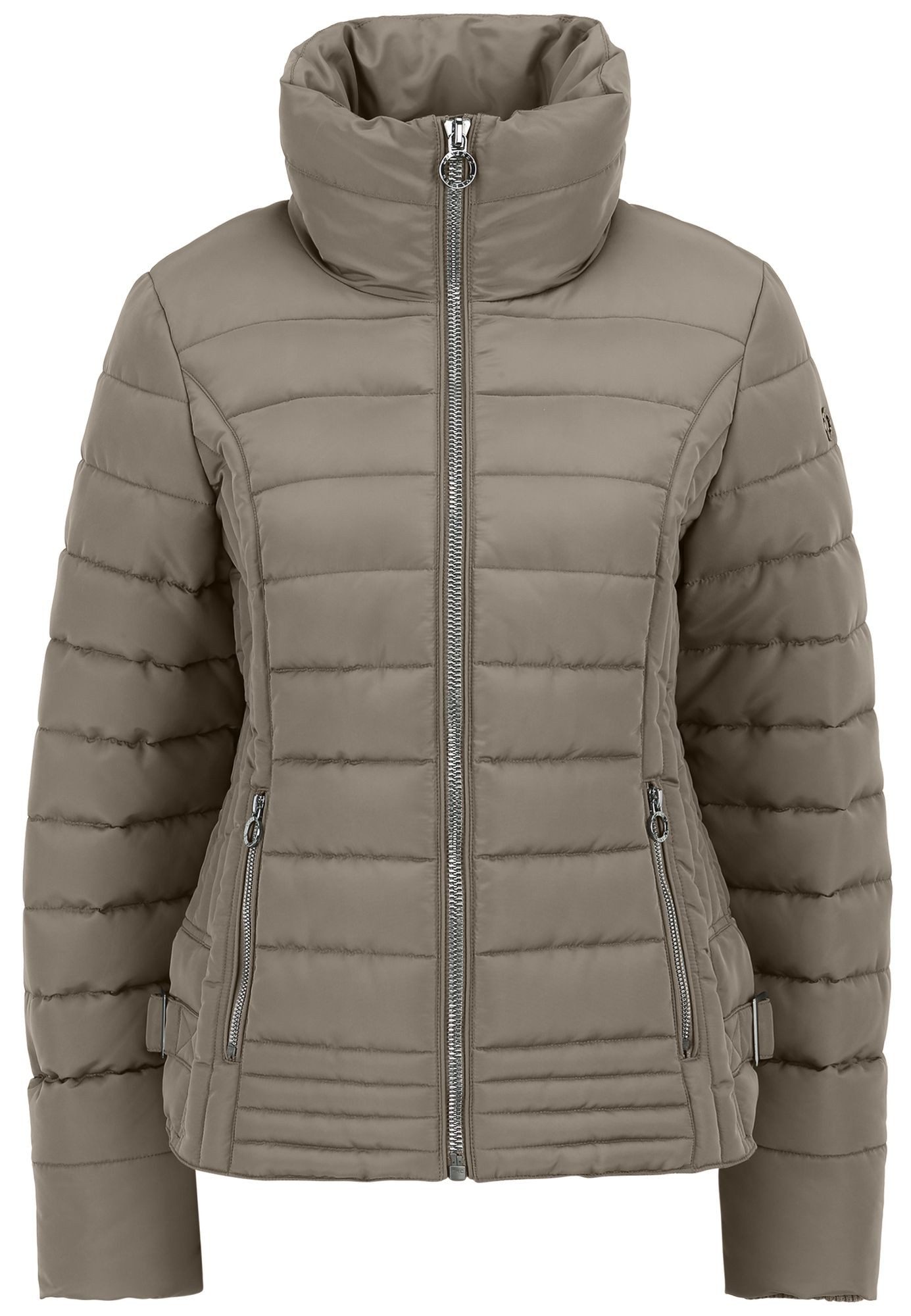 COVERED Damen Steppjacke - feminines Allroundtalent für den Winter. Diese Jacke vereint Stil und Funktionalität in einem einzigartigen Design. Markant großer Stehkragen, abgerundet von kleinen metallischen Applikationen. Der innenliegende Ärmelwindfang hält den Wind draußen und sorgt für zusätzlichen Komfort. Die figurschmeichelnde Steppung kann durch die seitlich verstellbaren Schnallen zusätzlich betont werden. Die praktischen Reißverschlusstaschen sind mit weichem Fleece gefüttert und bieten so einen kuscheligen Ort für Ihre Hände und genügend Stauraum für alles Wichtige. Hinten etwas länger. Und das Beste: Diese Jacke ist wattiert mit recyceltem Material - Unifi REPREVE® - für ein gutes Gefühl, auch außerhalb der kalten Jahreszeit. Erhältlich in verschiedenen Farben und Größen ist unsere Damen Steppjacke dank der wasserabweisenden Ausrüstung ein optimaler Allrounder durch die kühle Jahreszeit - auch bei wechselhaftem Wetter.