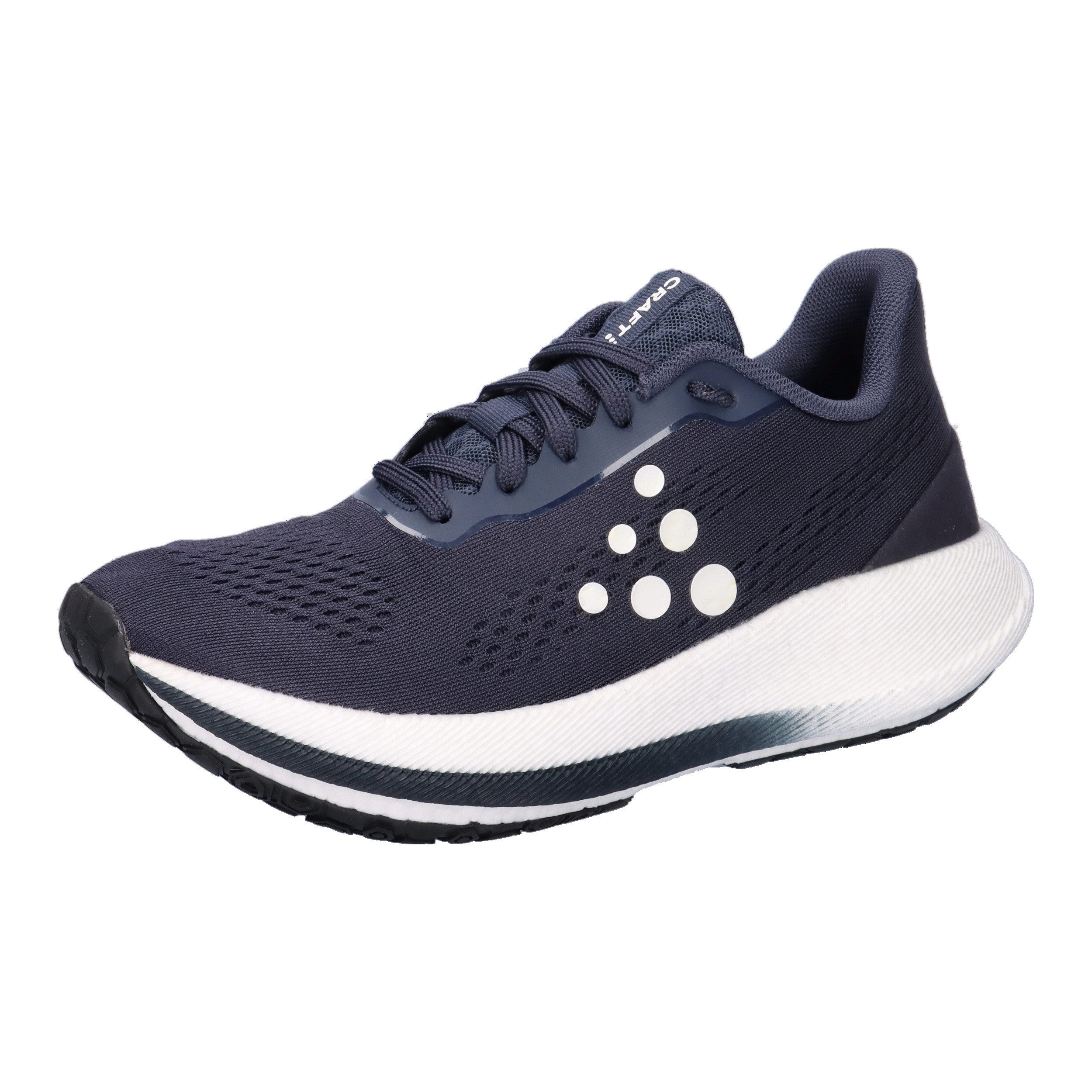 Craft Damen Laufschuhe PACER W. Wir stellen den Pacer vor, unseren bequemsten Performance-Laufschuh, der außergewöhnlichen Schwung und Stabilität für reibungsloses und schnelles Laufen bietet. Pacer ist ein fortschrittlicher Performance-Laufschuh mit einer weicheren Version des erfolgreichen Px Foam™ in der Zwischensohle und bietet ein stabiles, geschmeidiges und reaktionsschnelles Laufgefühl mit explosivem Rebound – perfekt für Speedtraining und tägliches Laufen. Seine leichte Konstruktion sorgt für ein federndes, energetisches Erlebnis, das Sie bei jedem Schritt vorantreibt, während sein minimales Außensohlendesign mit Sechskant-Stollenmuster überlegene Traktion für sicheren Halt auf verschiedenen Untergründen bietet. Darüber hinaus besteht das Obermaterial aus einem leichten und atmungsaktiven Material, das eine bequeme und stabile Passform bietet. Dank seines schlanken Designs und leichten Gewichts ist der Pacer eine ideale Wahl für Läufer, die einen schnellen, flinken Schuh suchen, der sie nicht belastet. Px Foam™ ist ein ultraleichtes Zwischensohlenmaterial, das eine außergewöhnlich hohe Energierückgabe bietet und gleichzeitig stoßdämpfend und flexibel ist. Ein einziges natürliches Treibmittel wird bei der Herstellung dieser Innovation verwendet, ohne dass chemische Vernetzungsmittel hinzugefügt werden. Darüber hinaus sind die Roh- und Применитьmaterialien vollständig wiederverwendbar. Der innovative Schaum hat eine extrem geringe Dichte, was ihn bis zu 20 % leichter macht als herkömmliches EVA. Das reduzierte Gewicht in Kombination mit explosivem Rückprall macht Px Foam™ perfekt für jeden Lauf. Px Foam™ Zwischensohle: überlegene Energierückgabe. Konturiertes Chassis für reduziertes Gewicht und Premium-Komfort. Gewicht: 270 Gramm in UK Размер 8. Ferse 40 mm, Vorfuß 34 mm. Drop: 6 mm. Obermaterial: Textil, Sonstiges Material. Futter und Decksohle: Textil, Sonstiges Material. Laufsohle: Sonstiges Material.