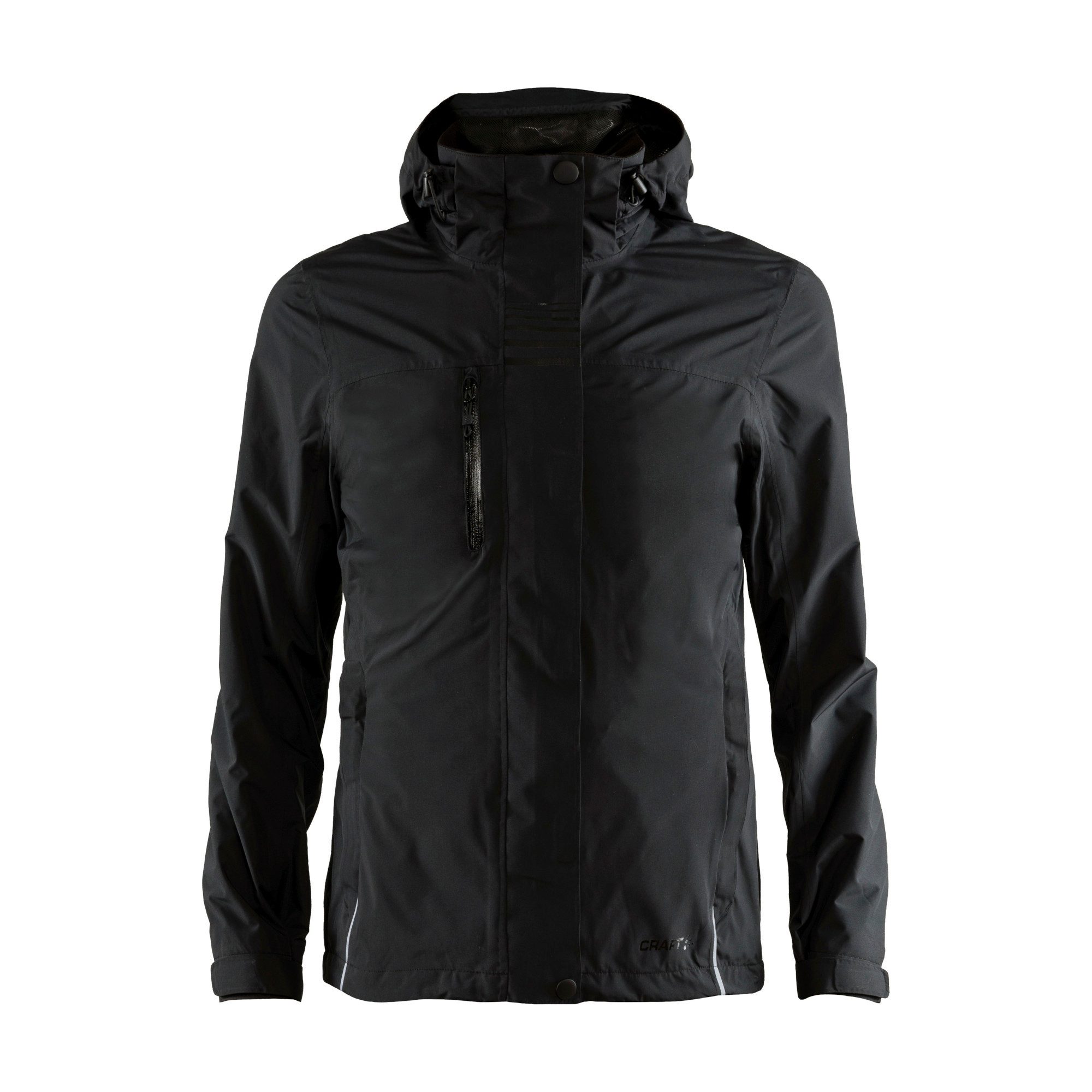 Craft Herren Regenjacke Urban Rain Jacket. Regenjacke mit getapten Nähten, wasserdichten Reißverschlüssen und abnehmbarer Kapuze. Inspiriert vom Glanz nasser Straßen im Laternenschein, wurden glänzende und matte Stoffe kombiniert und verleihen der Jacke einen urbanen Ausdruck. Das wasserdichte Material und die getapten Nähte sorgen für beste Wasserdichtigkeit. Darüber hinaus verfügt die Jacke über eine mehrfach verstellbare und abnehmbare Kapuze, verstellbaren Ärmelabschlüssen und vier Taschen. WP 8,000/MVP 8,000. Material: 100% Polyester.
