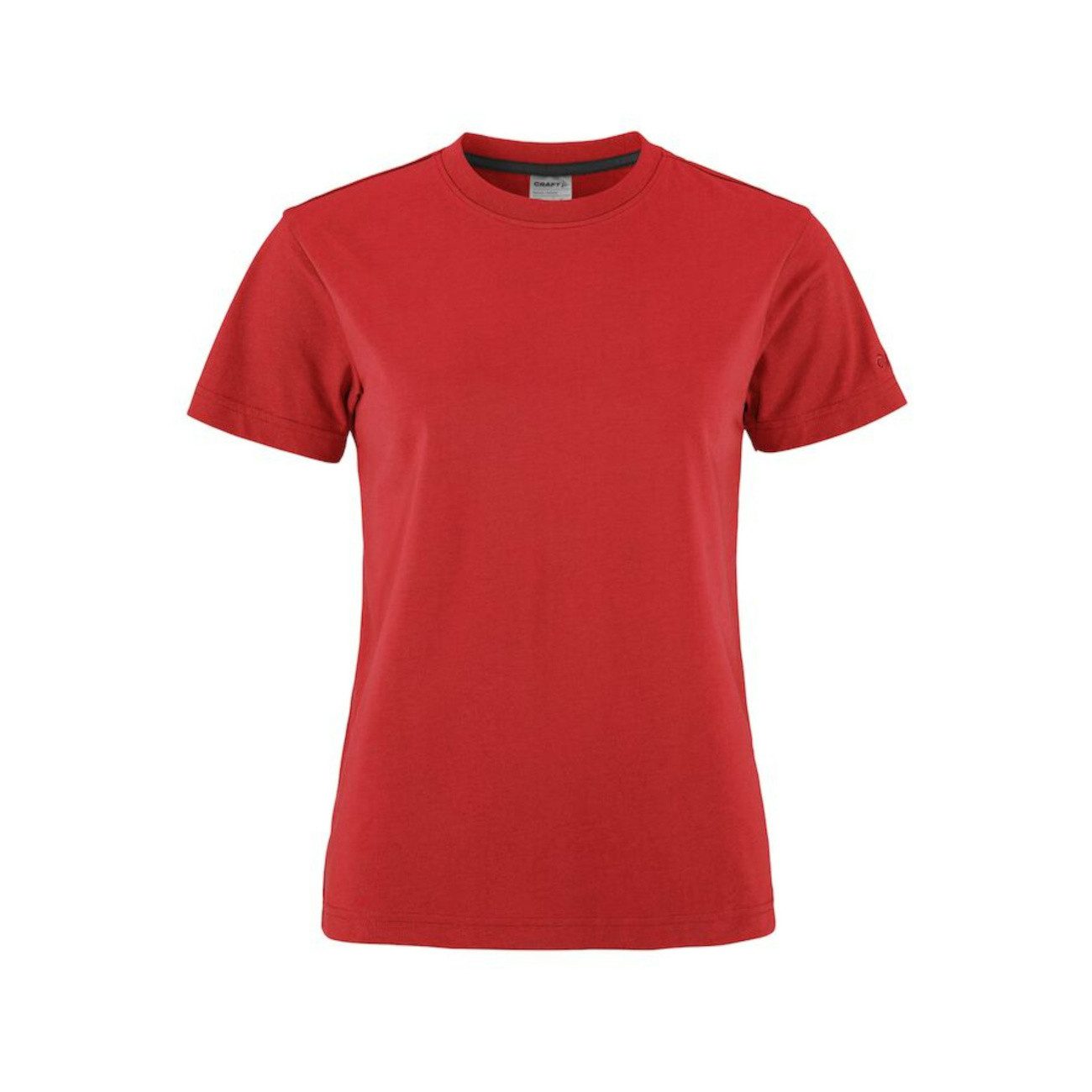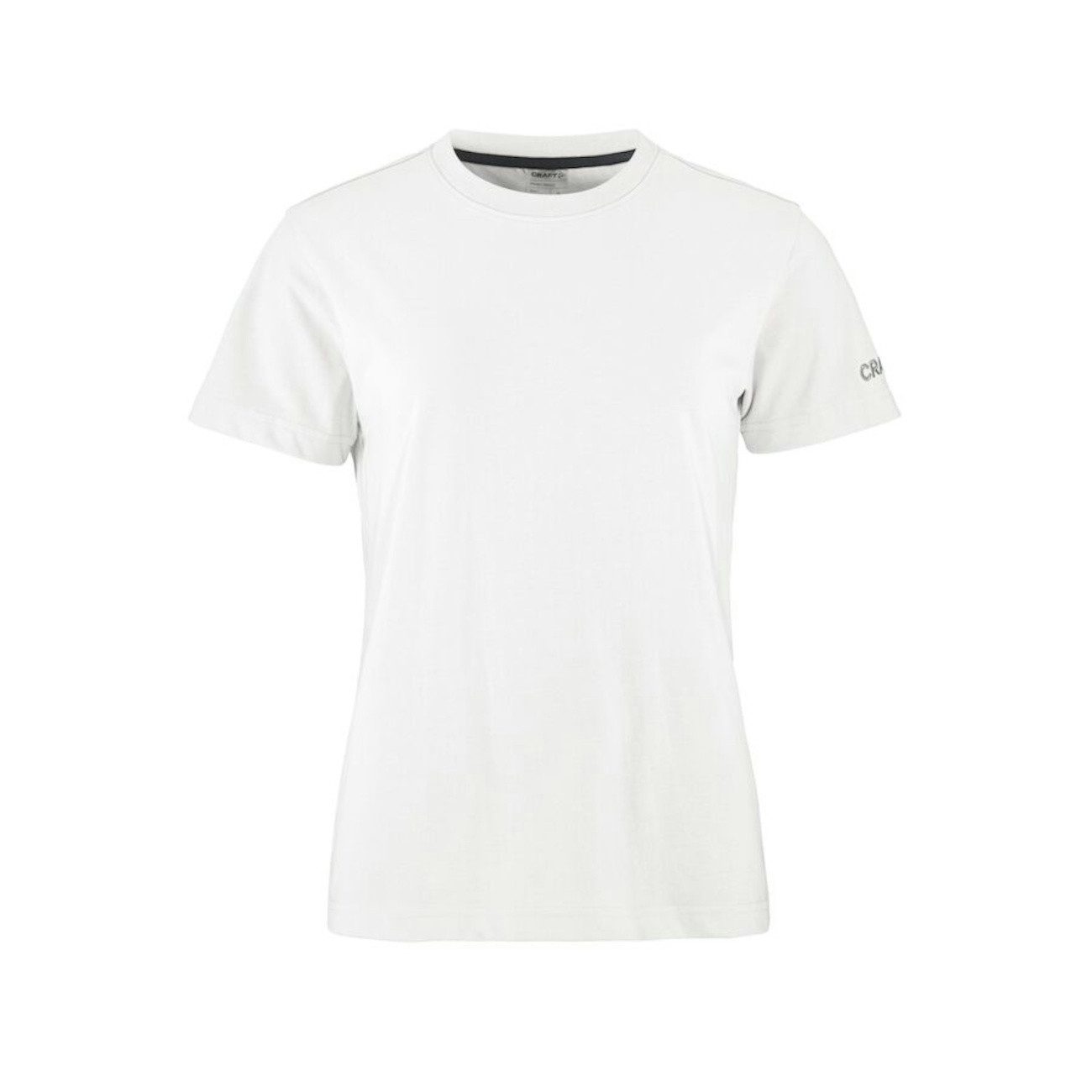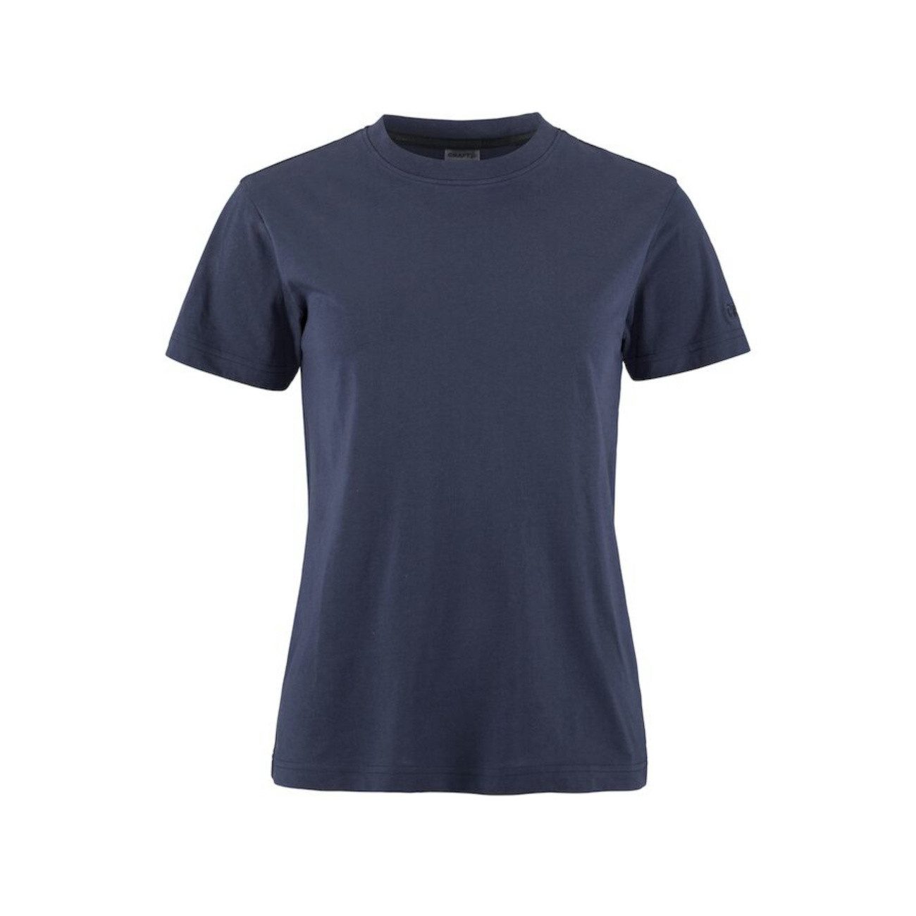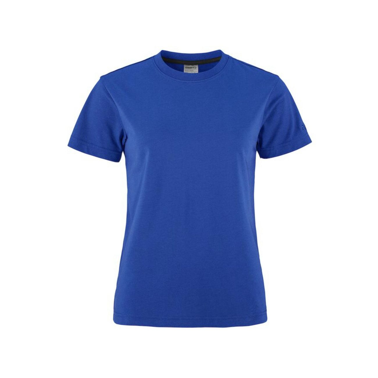 Craft Damen T-Shirt COMMUNITY 2.0 TEE. Das Community 2.0 Tee ist ein äußerst bequemes T-Shirt für alltägliche Aktivitäten. Dieses vielseitige Kleidungsstück besteht aus einer weichen Mischung aus Bio-Baumwolle und recyceltem Polyester und sorgt für ein angenehmes Tragegefühl sowie einen effizienten Feuchtigkeitstransport, was sich positiv auf den Teamgeist auswirkt. Das T-Shirt besticht durch sein klares Design und bietet ausreichend Platz für Wappen und Sponsorenlogos. Weicher Stoff aus Bio-Baumwolle und recyceltem Polyester. Rundhals. Gesticktes Craft-Logo am Ärmel. Klares Design für Wappen und Logos. Normale Passform. Material: 60% Baumwolle, 40% Polyester.