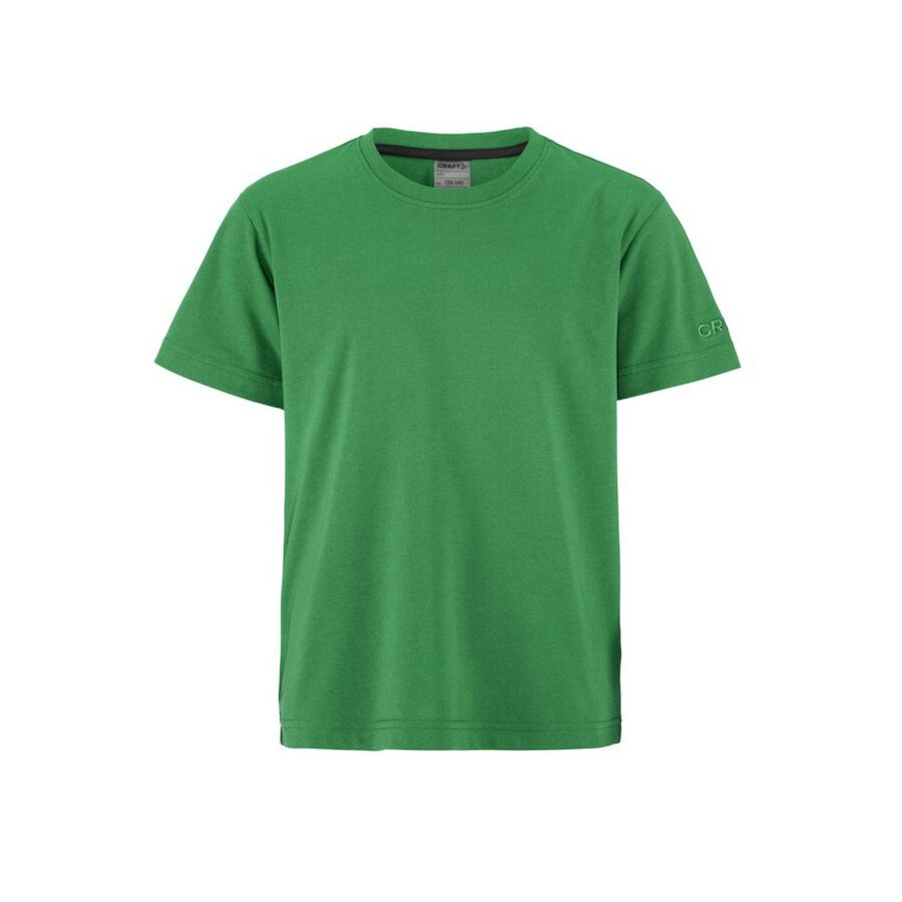 Craft Kinder T-Shirt COMMUNITY 2.0 TEE. Das Community 2.0 Tee ist ein äußerst bequemes T-Shirt für alltägliche Aktivitäten. Dieses vielseitige Kleidungsstück besteht aus einer weichen Mischung aus Bio-Baumwolle und recyceltem Polyester und sorgt für ein angenehmes Tragegefühl sowie einen effizienten Feuchtigkeitstransport, was sich positiv auf den Teamgeist auswirkt. Das T-Shirt besticht durch sein klares Design und bietet ausreichend Platz für Wappen und Sponsorenlogos. Weicher Stoff aus Bio-Baumwolle und recyceltem Polyester. Rundhals. Gesticktes Craft-Logo am Ärmel. Klares Design für Wappen und Logos. Normale Passform. Material: 60% Baumwolle, 40% Polyester.