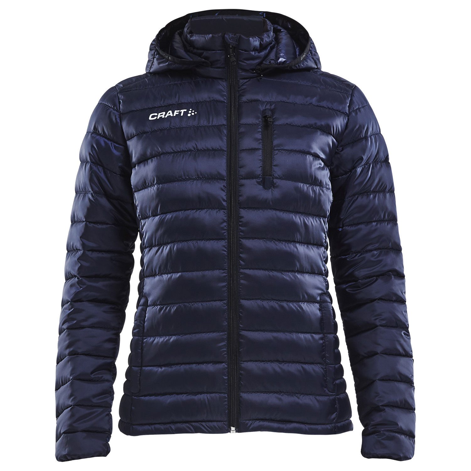 Craft Damen Steppjacke Isolate Jacket. Gepolsterte, wind- und wasserabweisende Jacke für Aufwärm- und formelle Anlässe. Mit abnehmbarer Kapuze, Brusttasche mit Reißverschluss und verstellbarem Saum. Reißverschluss mit Kinnschutz. Polsterung aus Mikrofaser mit guten thermischen Eigenschaften. Material: 100% Polyester.