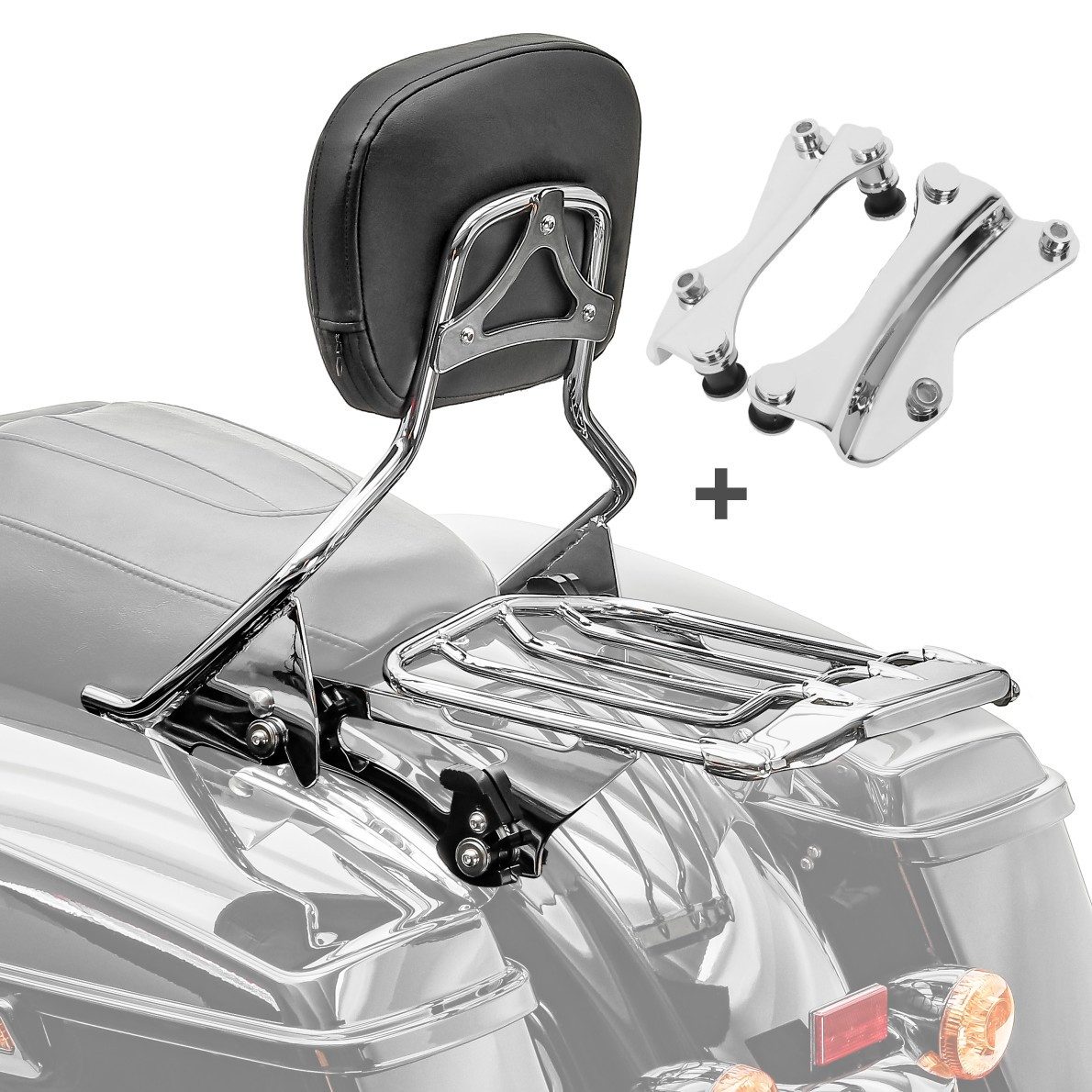 • Set bestehend aus abnehmbarer Sissybar, Anbausatz (4-Punkt-Docking Hardware Kit) und Gepäckträger