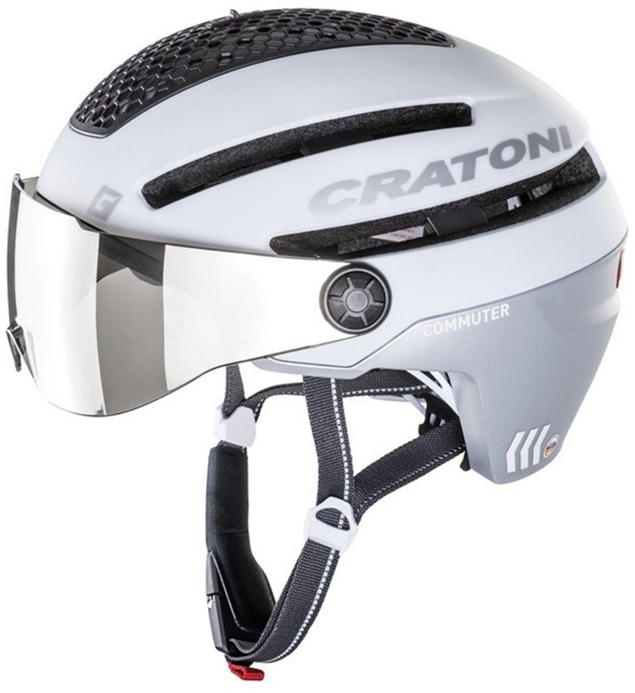 Da gerade im Stadtverkehr die Sicherheit eine große Rolle spielt, hat Cratoni den COMMUTER entwickelt, einen speziellen Pedelec Helm der mit seinen anpassungsfähigen Features sich an die persönlichen Anforderungen und Leistungen anpasst um Sie so komfortabel und schnell von A nach B zu begleiten - Komfort vereint mit größter Sicherheit - das Schwenkvisier schützt Sie vor Wind, Sonne oder Regen. Der große Lichtsteifen hinten sorgt für beste Sichtbarkeit im Straßenverkehr und die tiefgezogene Schutzzone im Nacken- und Schläfenbereich sorgt für zusätzliche Sicherheit. So sind Sie immer stylish und gut geschützt unterwegs egal ob auf dem Weg zur Arbeit oder in der Freizeit.