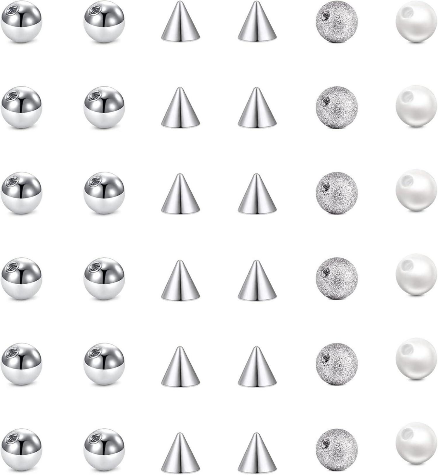 Das Piercing Kugel Set 1,2mm bietet 36 hochwertige Ersatzkugeln für Ihren Piercingschmuck. Jede Kugel hat einen Durchmesser von 3mm und einen 16G Gewinde, passend für verschiedene Piercingarten wie Nasenpiercings, Septum Piercings, Lippenpiercings, Augenbrauenpiercings und Tragus Helix Piercings.